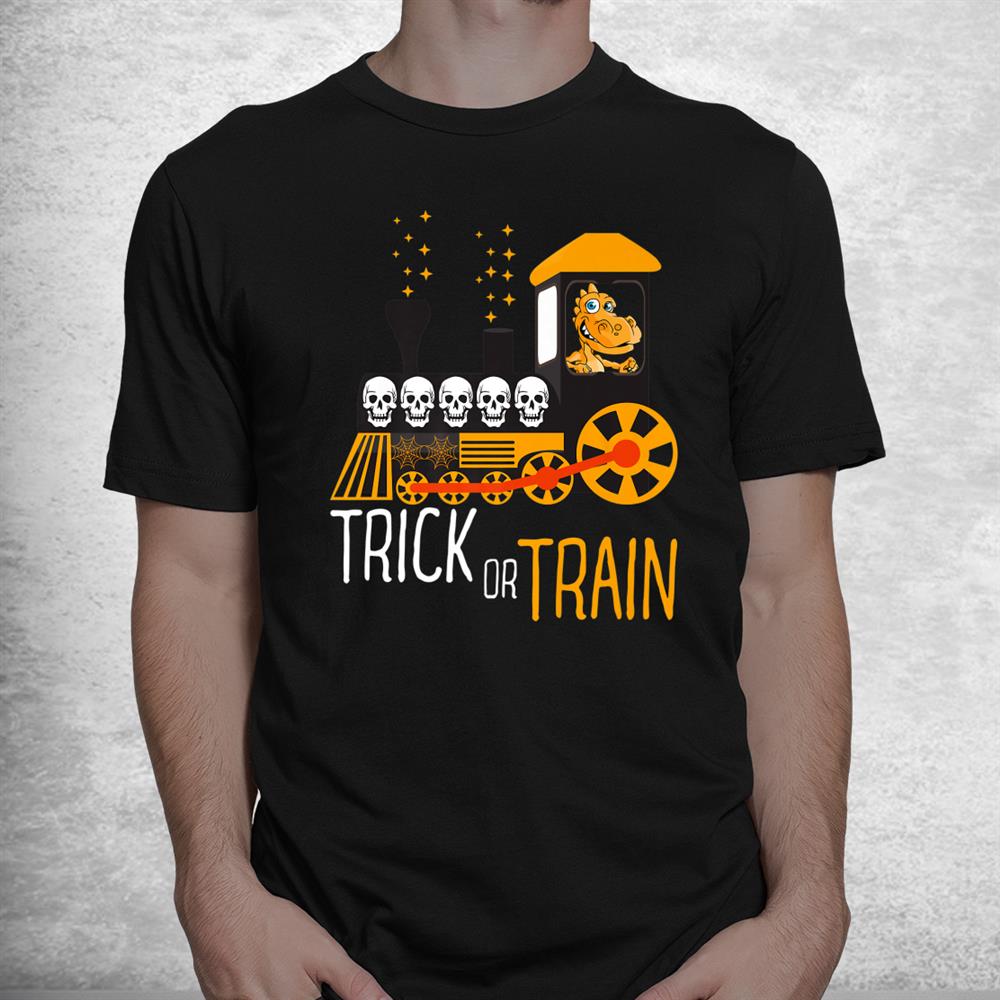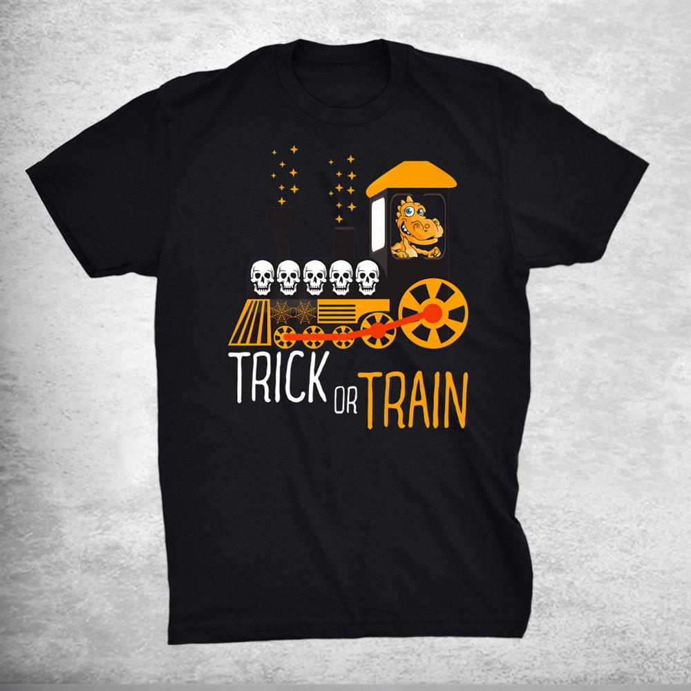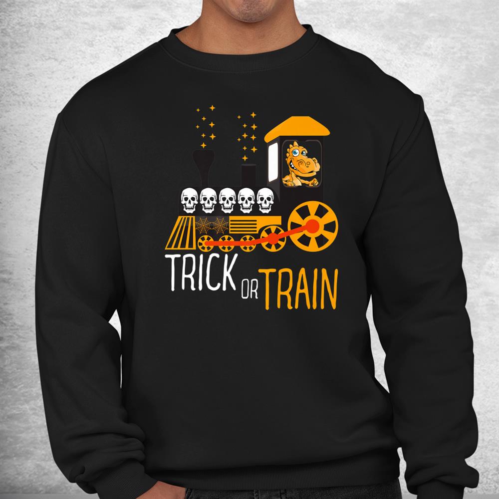 Trick Or Train Halloween Dinosaur Riding Train Funny Shirt, hoodie, sweatshirt, long sleeve and ladies T-shirt