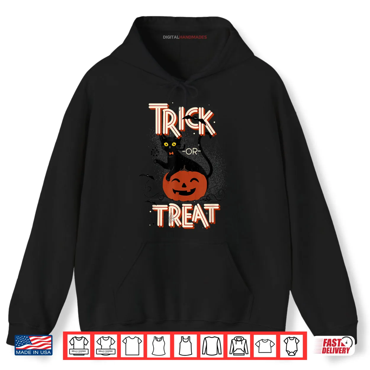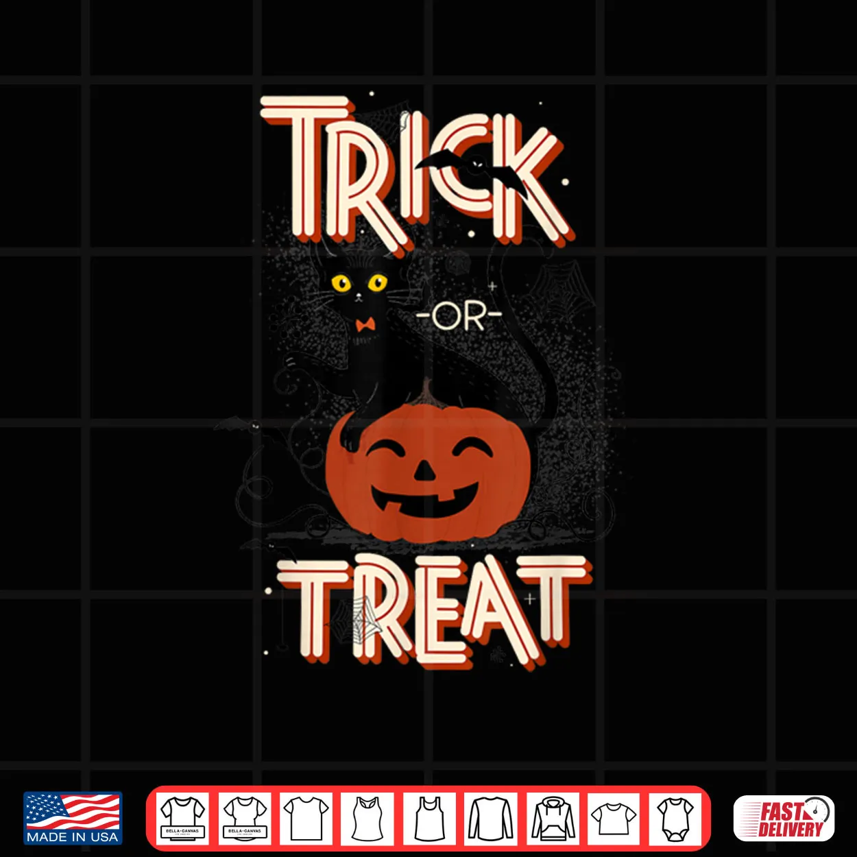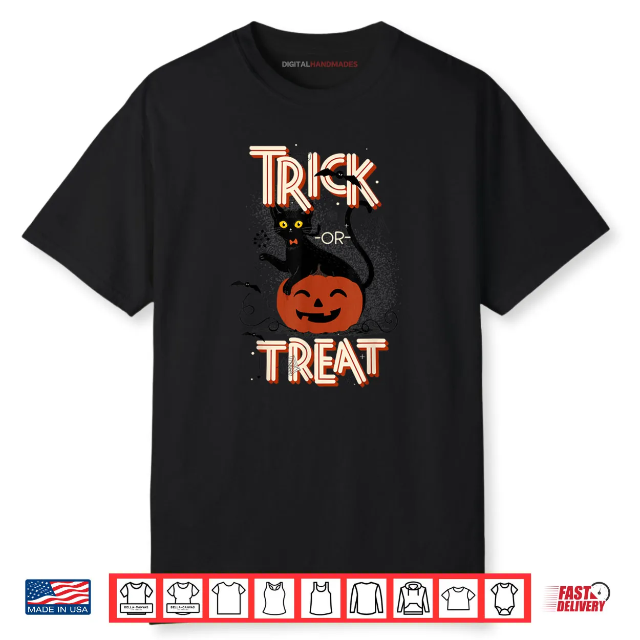 Trick or Treat Black Cat on Pumpkin Halloween Shirt