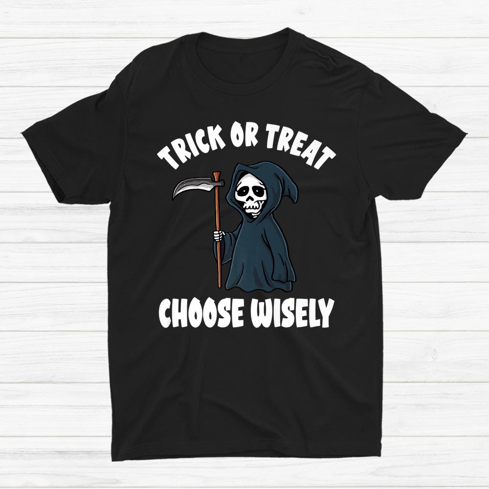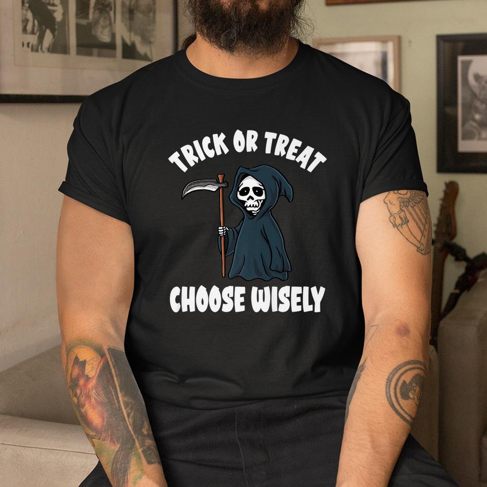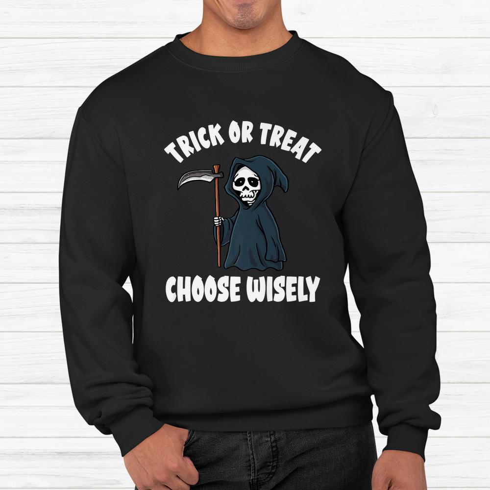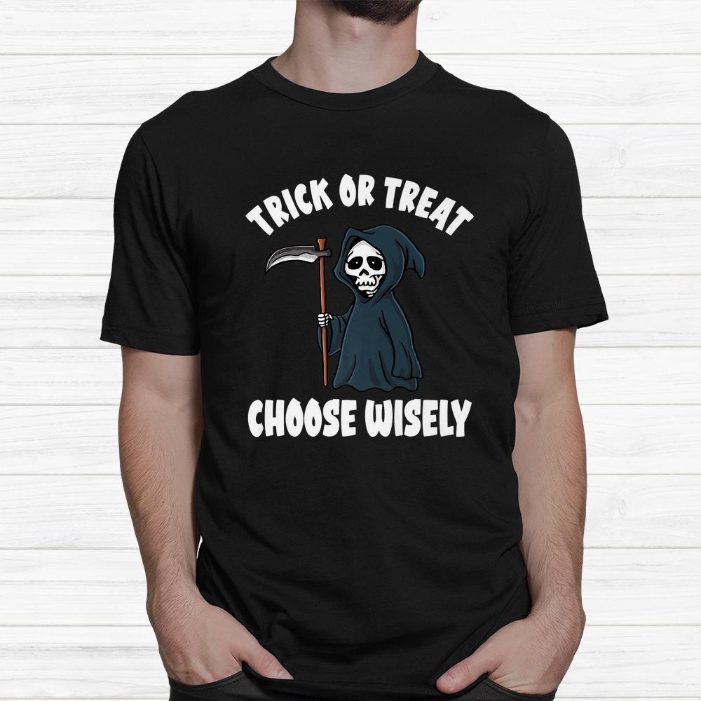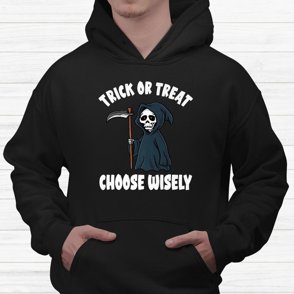 Trick Or Treat Chose Wisely Cute Grim Reaper Halloween Shirt, hoodie, sweatshirt, long sleeve and ladies T-shirt