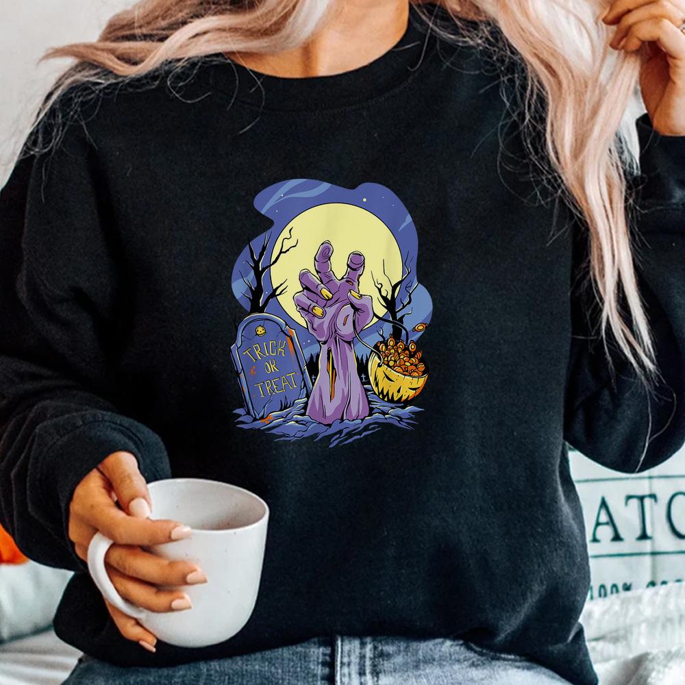 Trick Or Treat Grave Zombie Happy Halloween Boo Shirt, hoodie, sweatshirt, long sleeve and ladies T-shirt