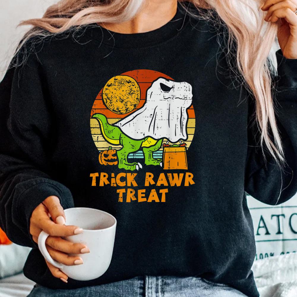 Trick Rawr Treat Ghost Dinosaur Halloween Shirt, hoodie, sweatshirt, long sleeve and ladies T-shirt
