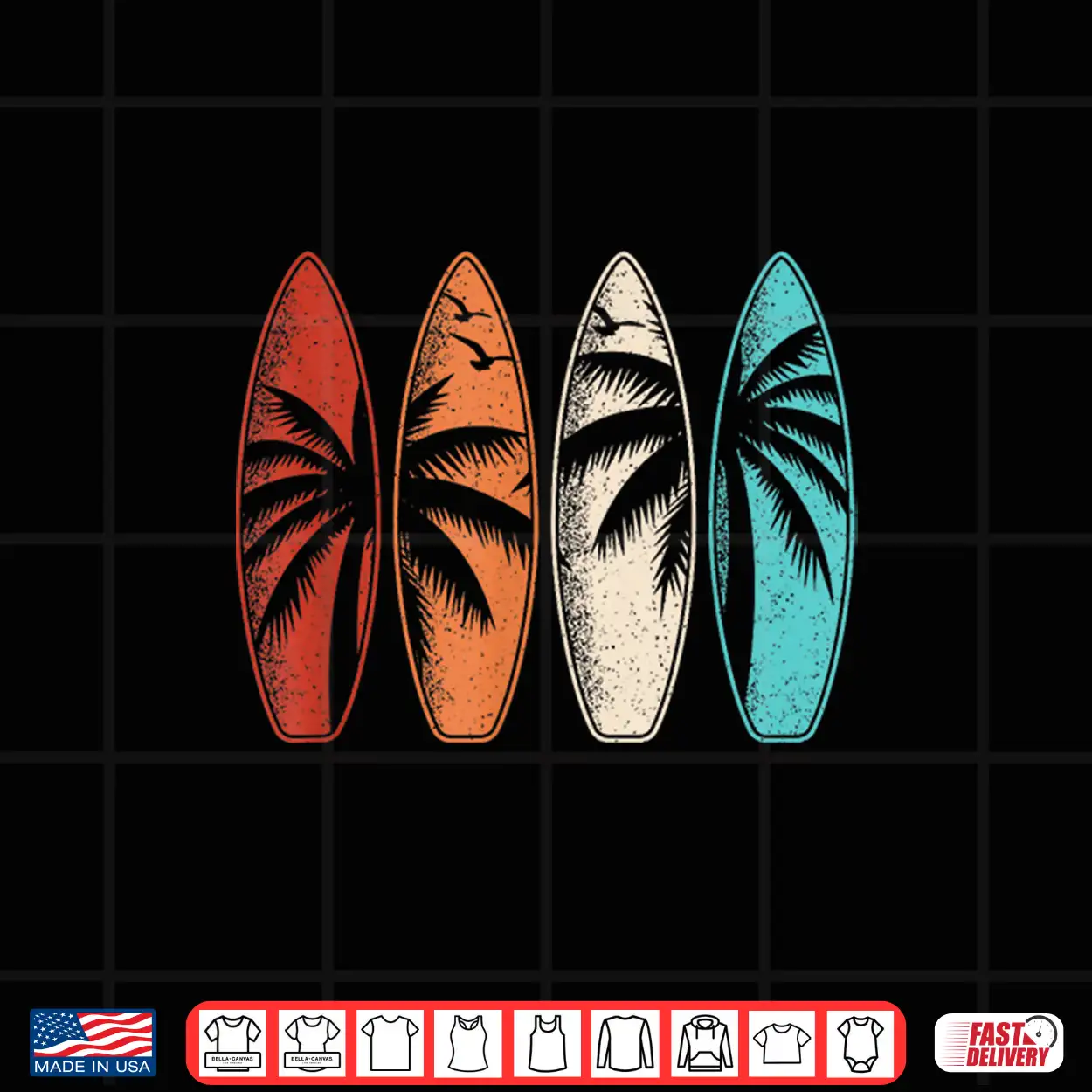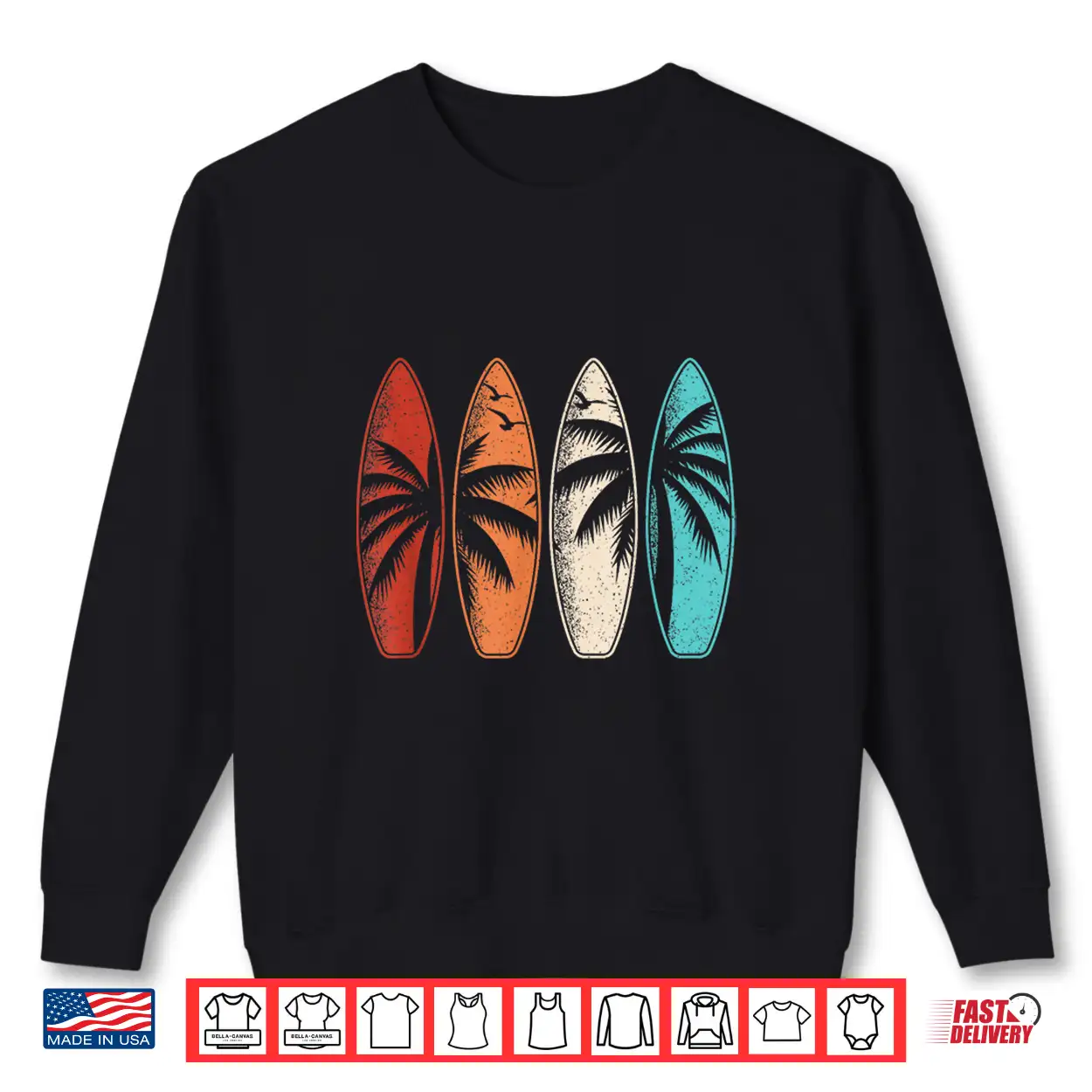 Tropical Hawaii Palm Tree Surfing Beach Surfboard Retro Surf Shirt