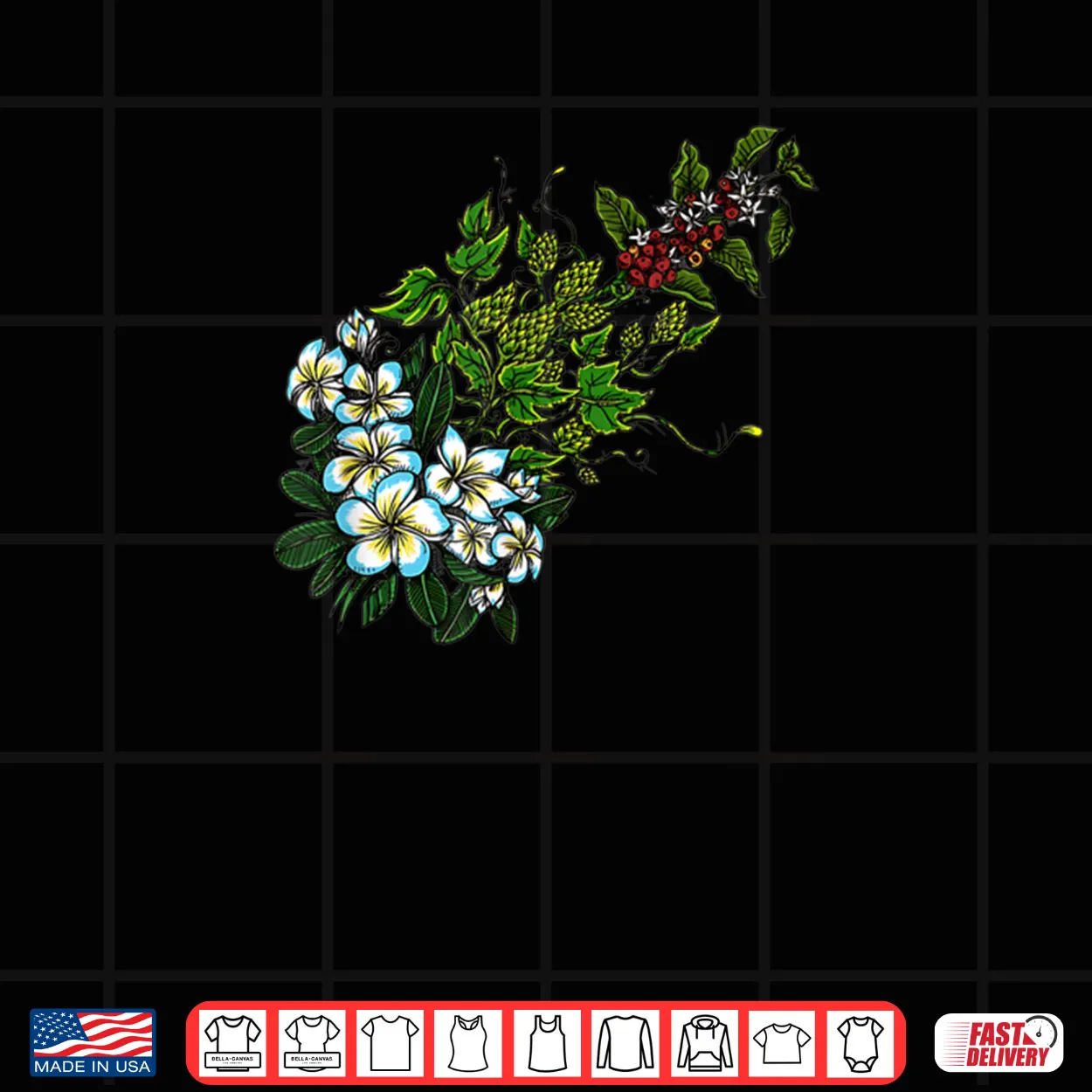Tropical Plumeria Blossoms Green Hops Coffee Cherries Shirt