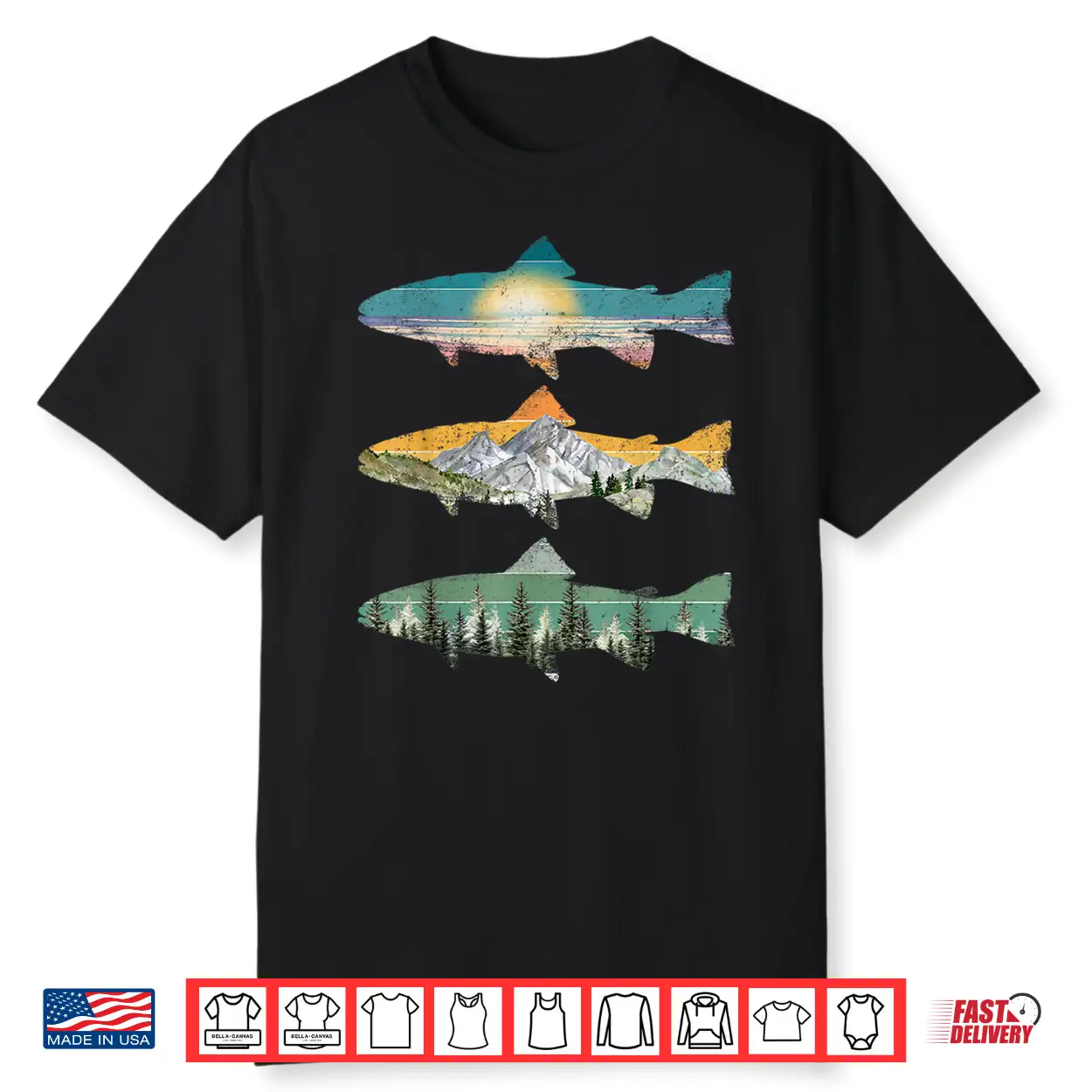 Trout Fly Fishing Graphic Tees Fisherman Outdoor Nature Mens Shirt
