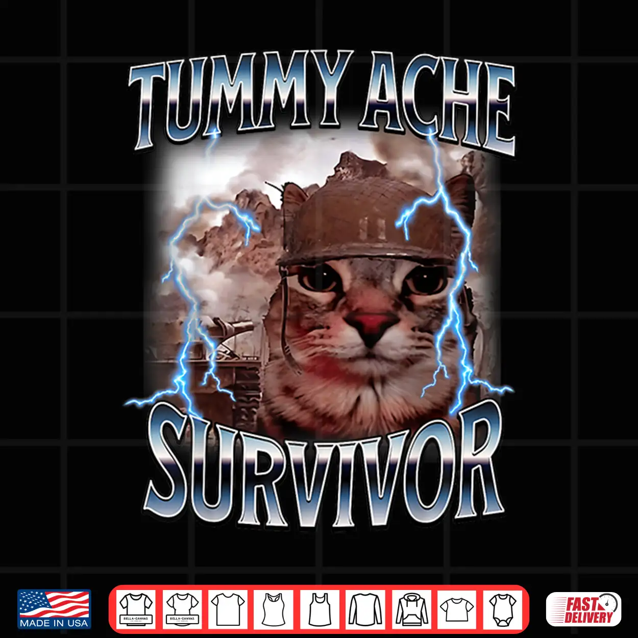 Tummy Ache Survivor Funny Cat Meme Sarcastic Humor Shirt