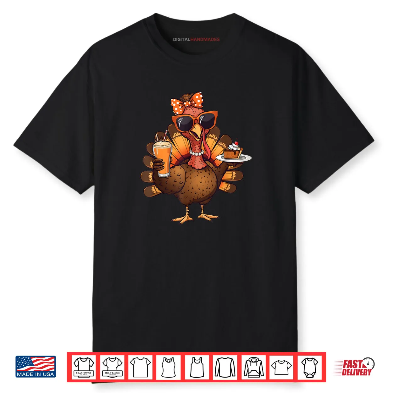 Turkey Drinking Coffee Bow Thanksgiving Turkey Day Shirt, Turkey, Drinking Coffee, Bow, Thanksgiving Turkey Day, Cute, Funny, Holiday