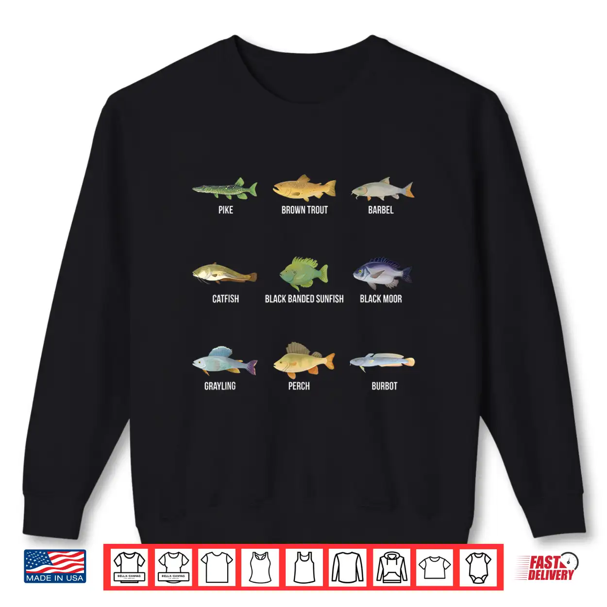 Types Of Freshwater Fish Species Funny Fishing Gifts Shirt