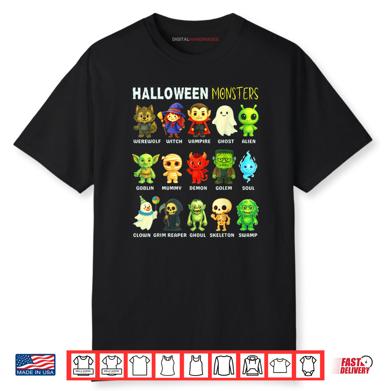 Types of Halloween Monsters Educational Poster For Kids Cute Shirt, Types Of Halloween Monsters Shirt, Educational Poster For Kids Shirt, Cute Halloween Shirt, Monster Learning Shirt, Kids Halloween Shirt