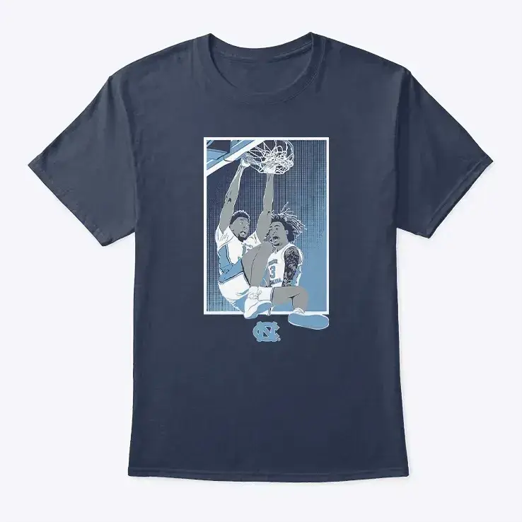 Have a look at the detailed information about the UNC Basketball Jalen Washington And Elliot Cadeau Moments T Shirt below!