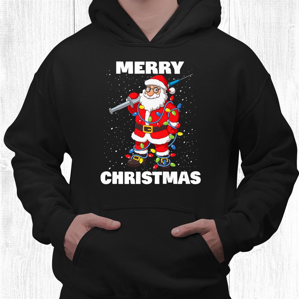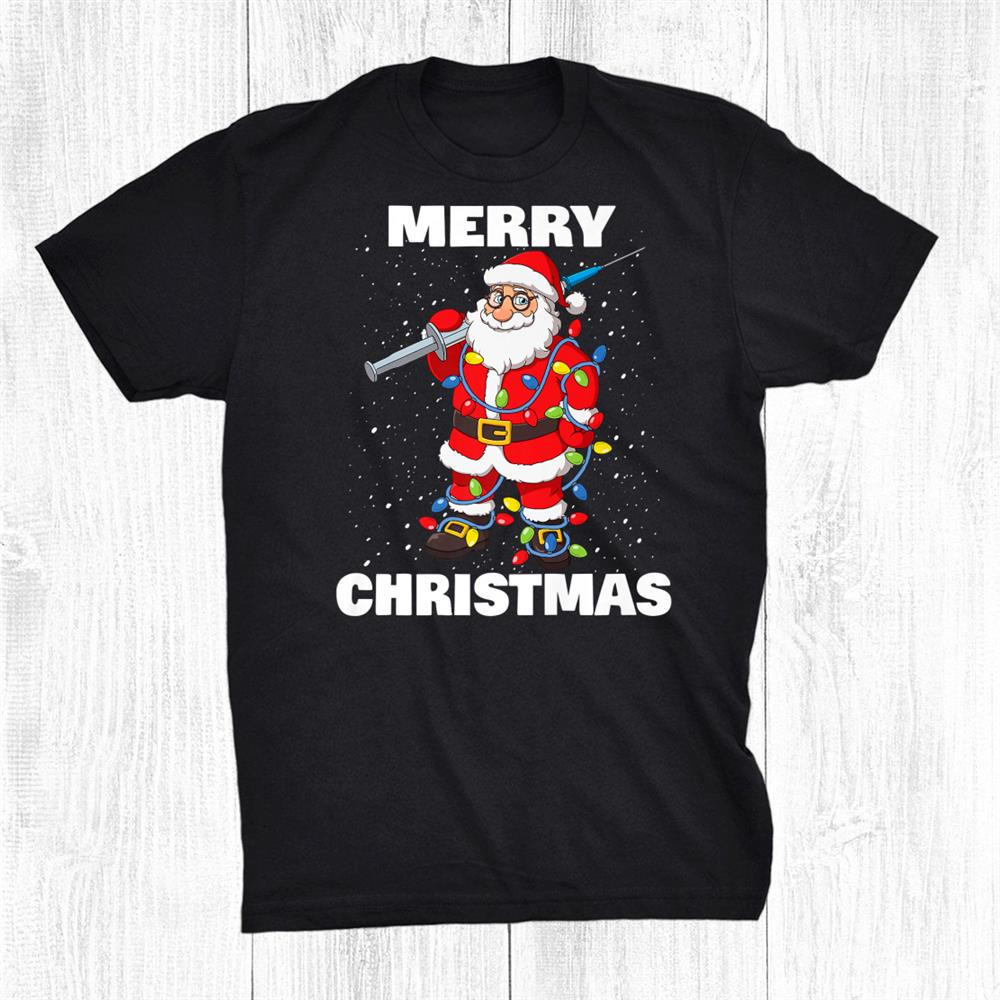 Vaccinated Santa Claus Funny Merry Christmas Tree Lights Shirt, hoodie, sweatshirt, long sleeve and ladies T-shirt