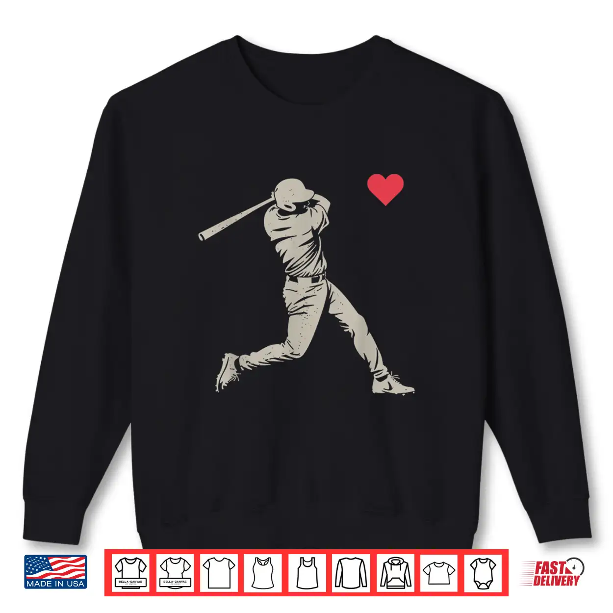 Valentines Day Baseball Batter Silhouette Heart Men Boy Kids Shirt