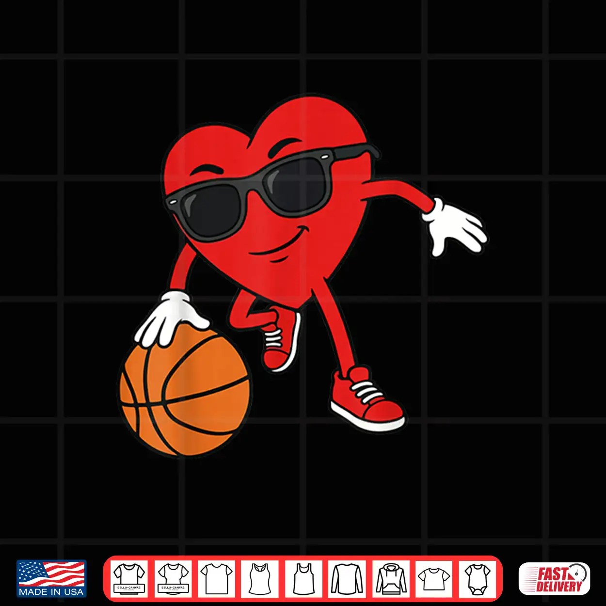 Valentines Day Basketball Heart Playing Basketball Boys Kids Shirt