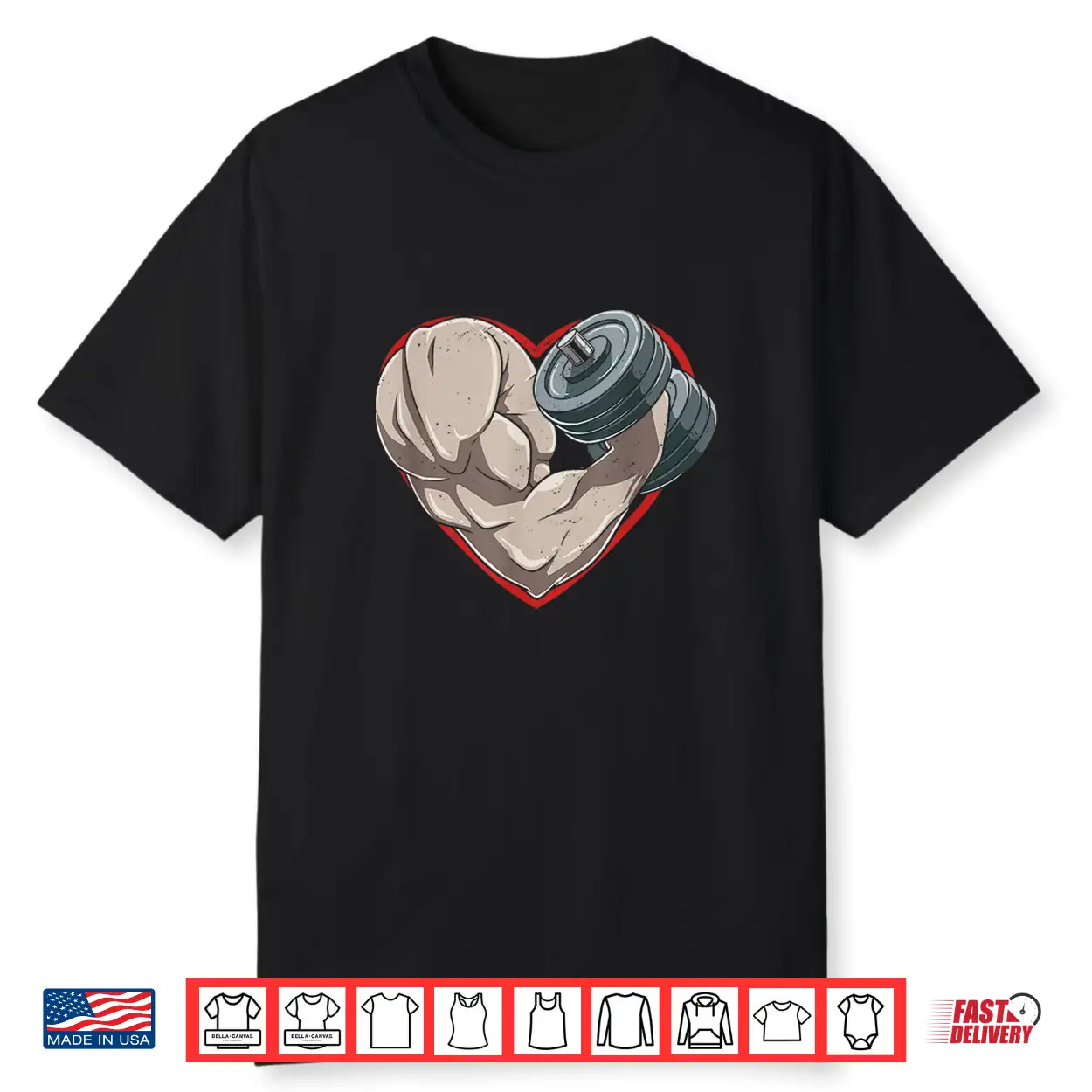 Valentines Day Bodybuilding Gym Muscles Dumbbell Heart Shirt