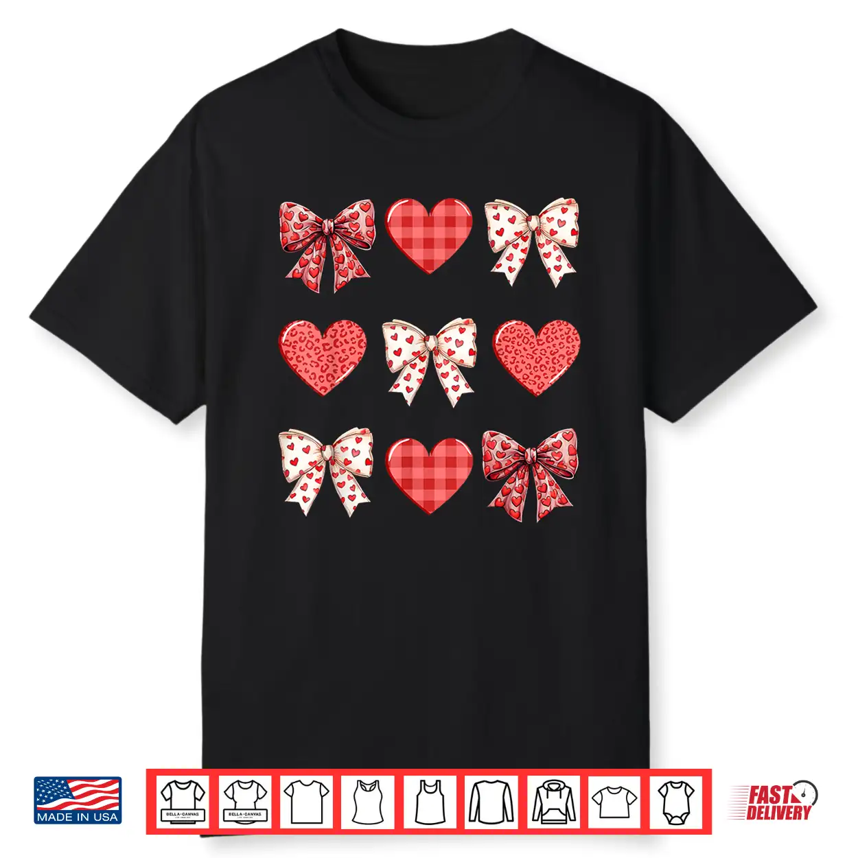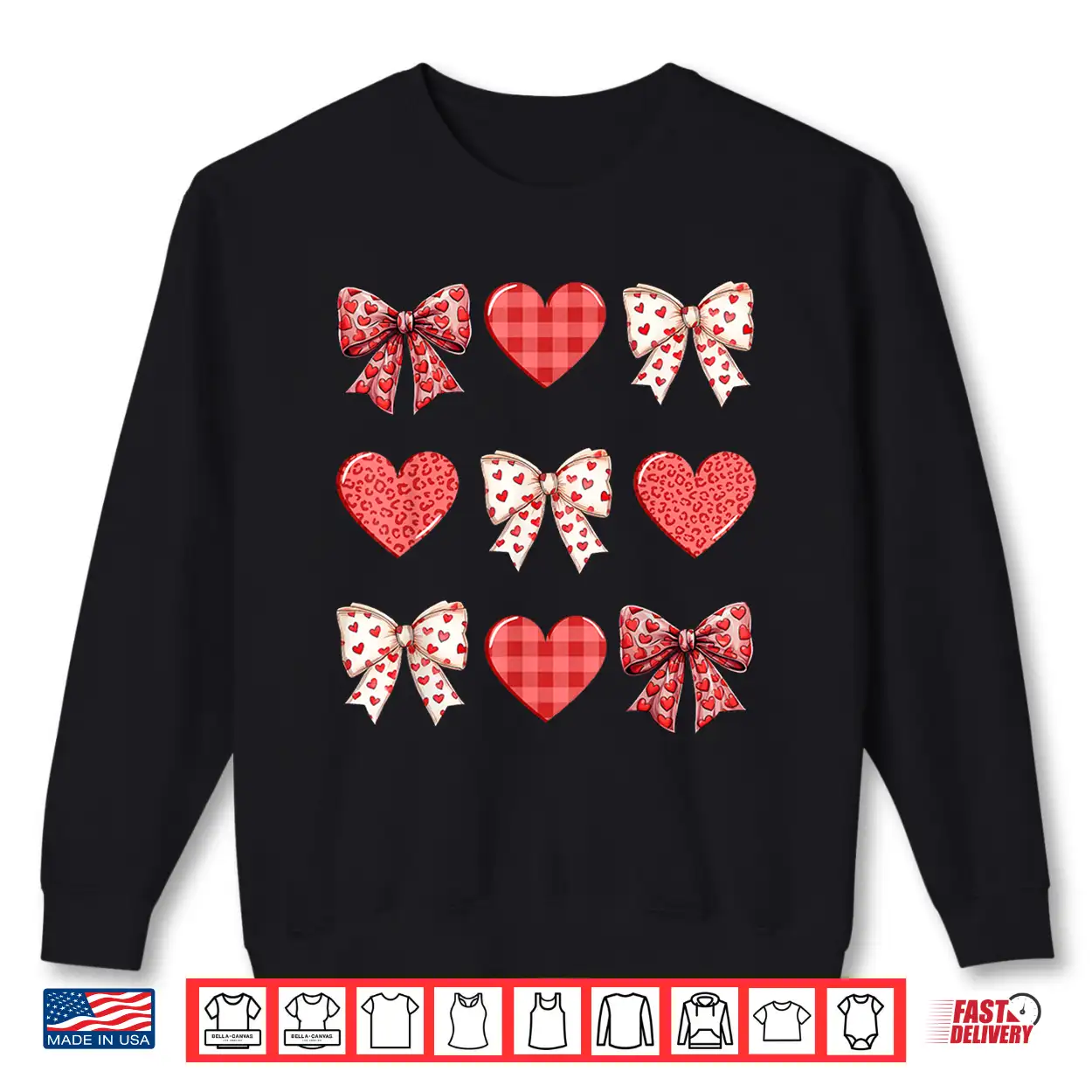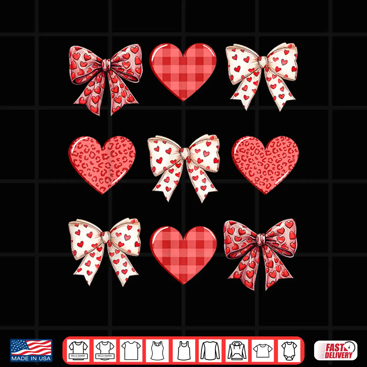 Valentines Day Hearts Leopard Coquette Bow Women Girls Boys Shirt