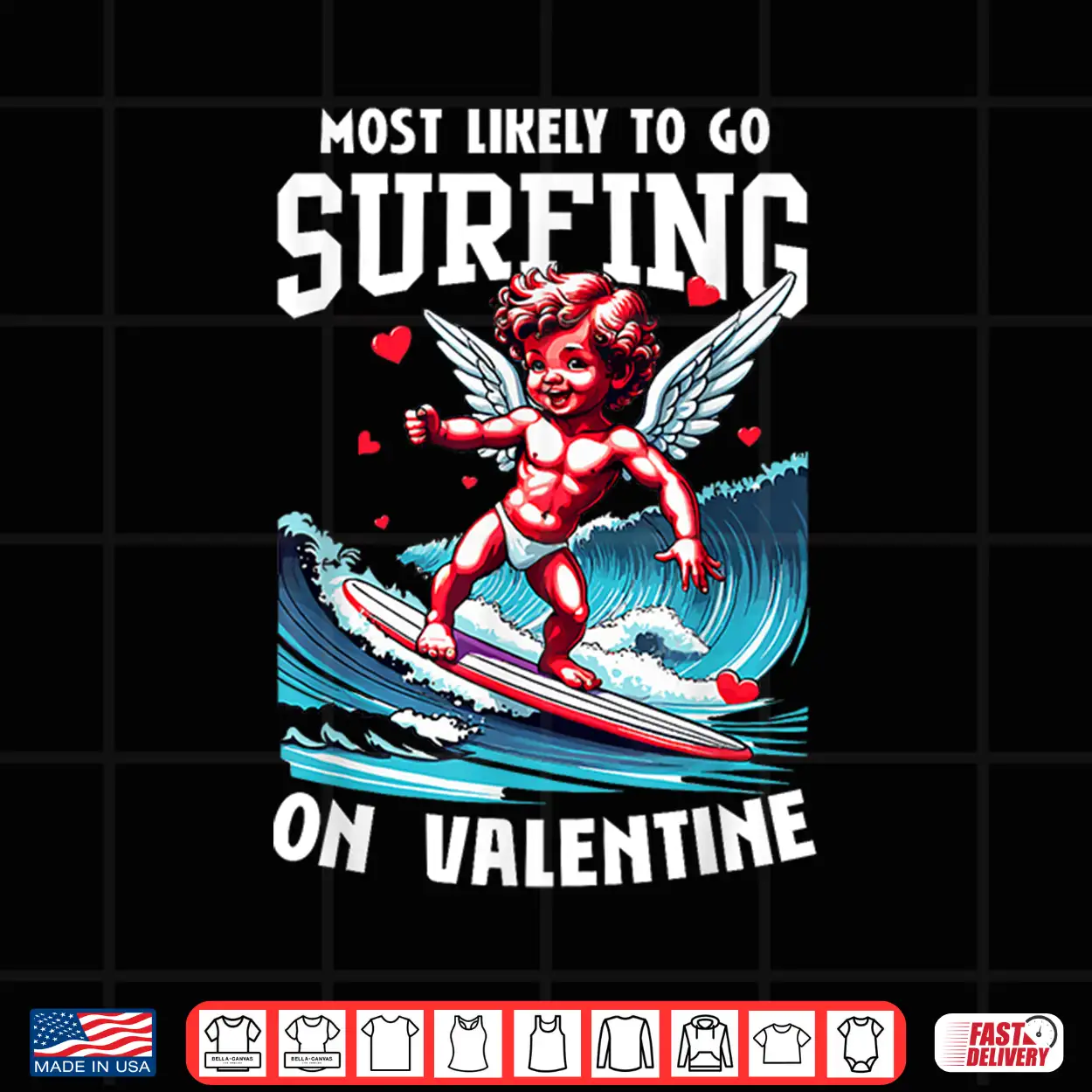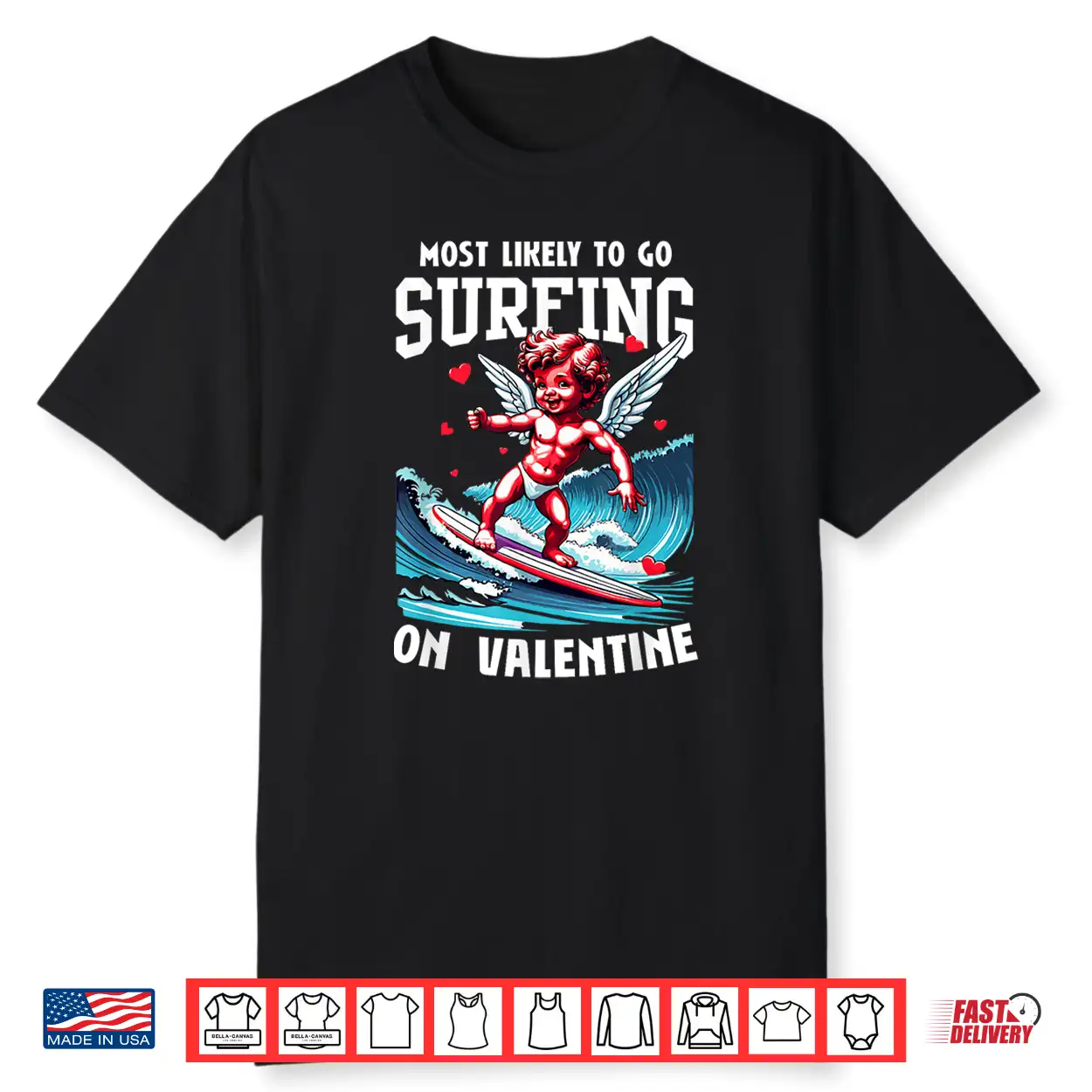 Valentines Day Surfing Lovers Funny Cupid Wave Surfer Cute Shirt
