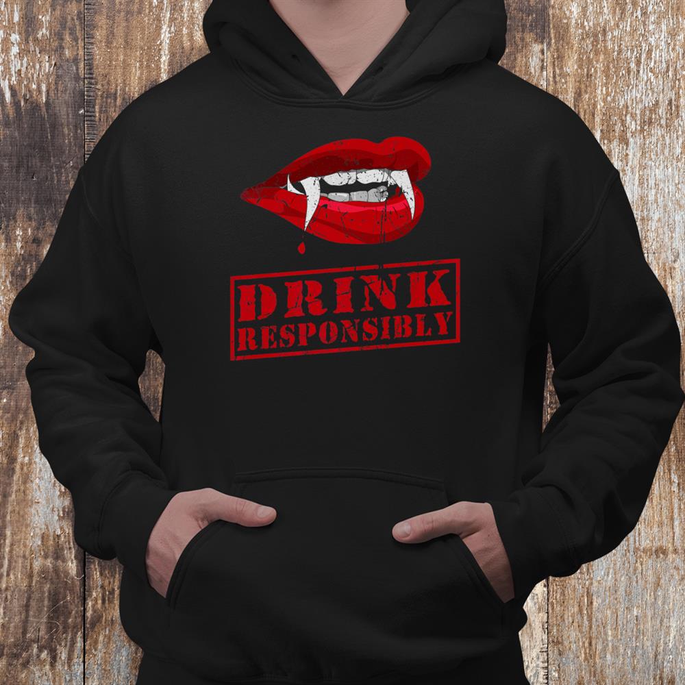 Vampire Lips Halloween Drink Responsibly Blood Shirt