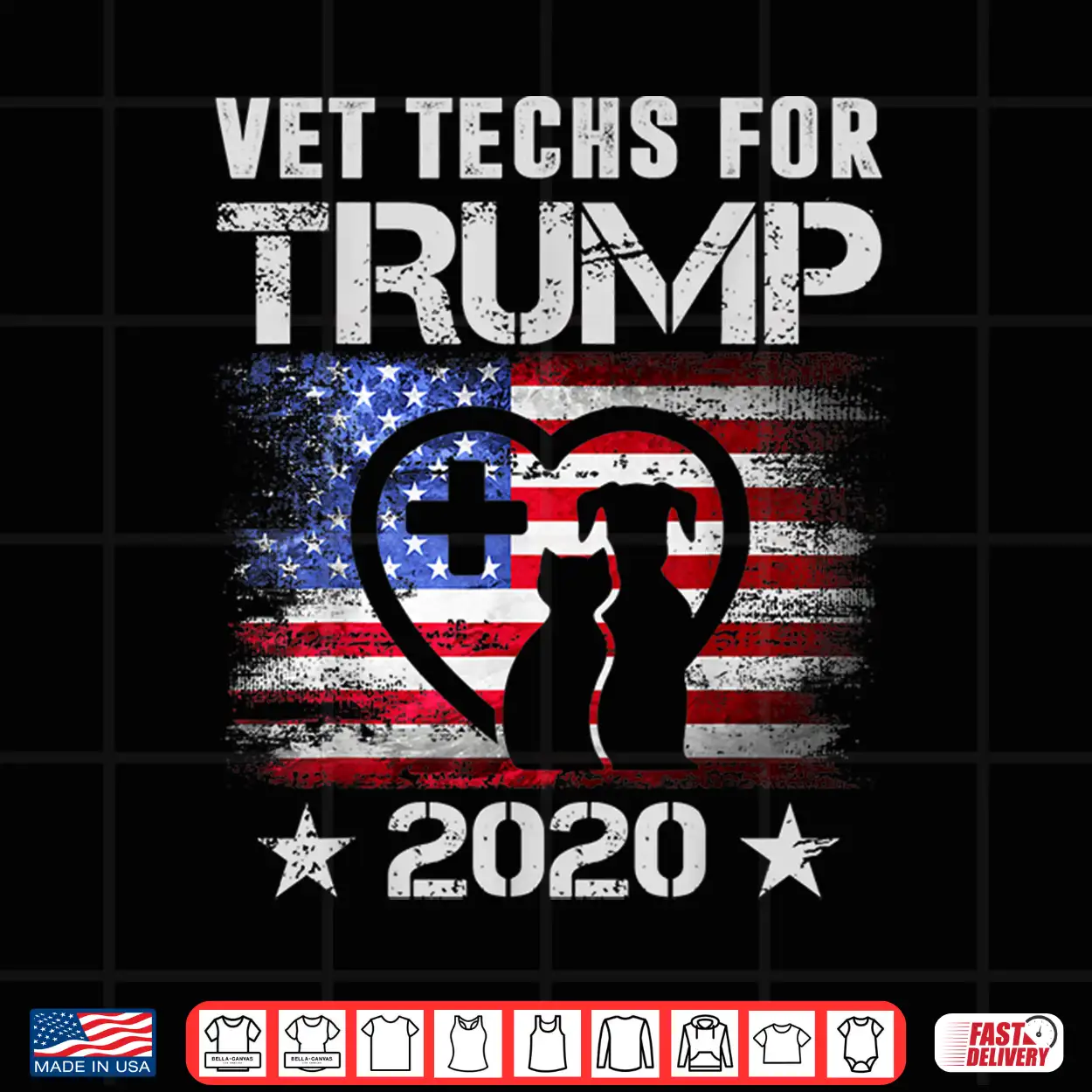 Vintage, Patriotic, Vet Techs For Trump 2020, Support, Republican, Campaign, Voting, Statement, Election, Political