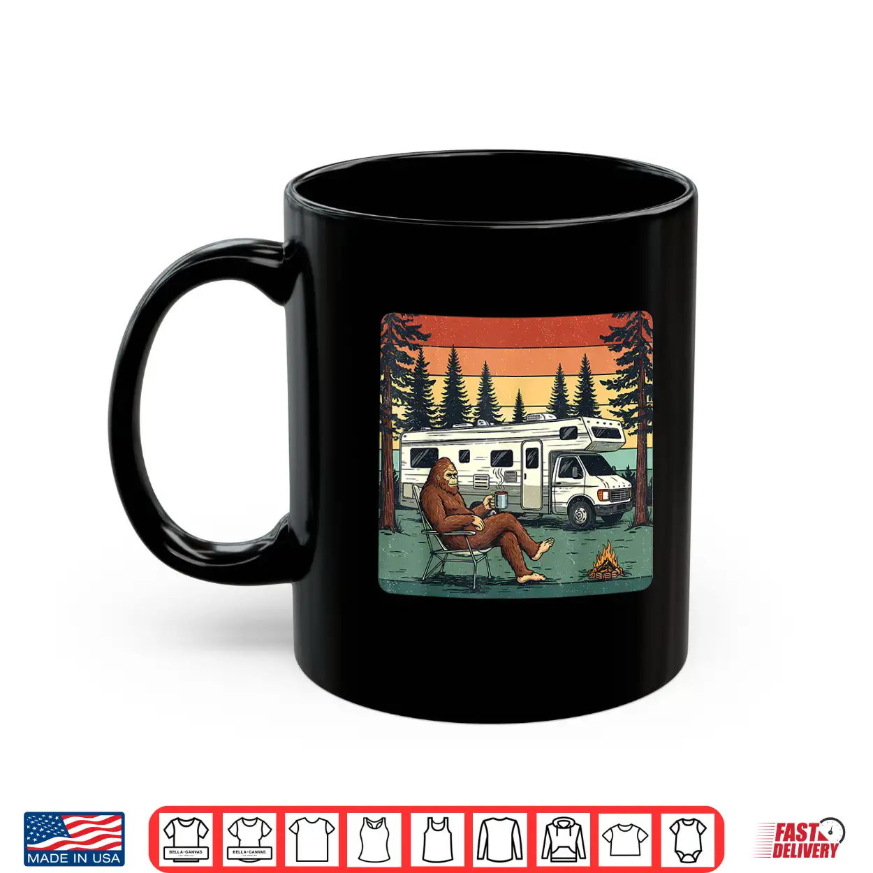 Adventure, Retro, Bigfoot, Cryptid, Road Trip, RV, Vintage Camping, Motorhome, Travel, Graphic