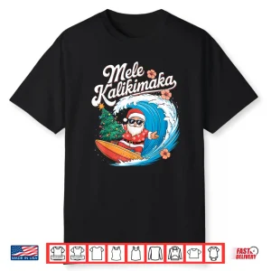 Vintage Cute Mele Kalikimaka Christmas Santa Surfing Costume Shirt