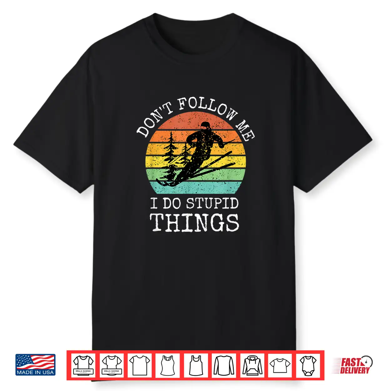 Vintage Don’T Follow Me I Do Stupid Things Cool Snowboarding Shirt