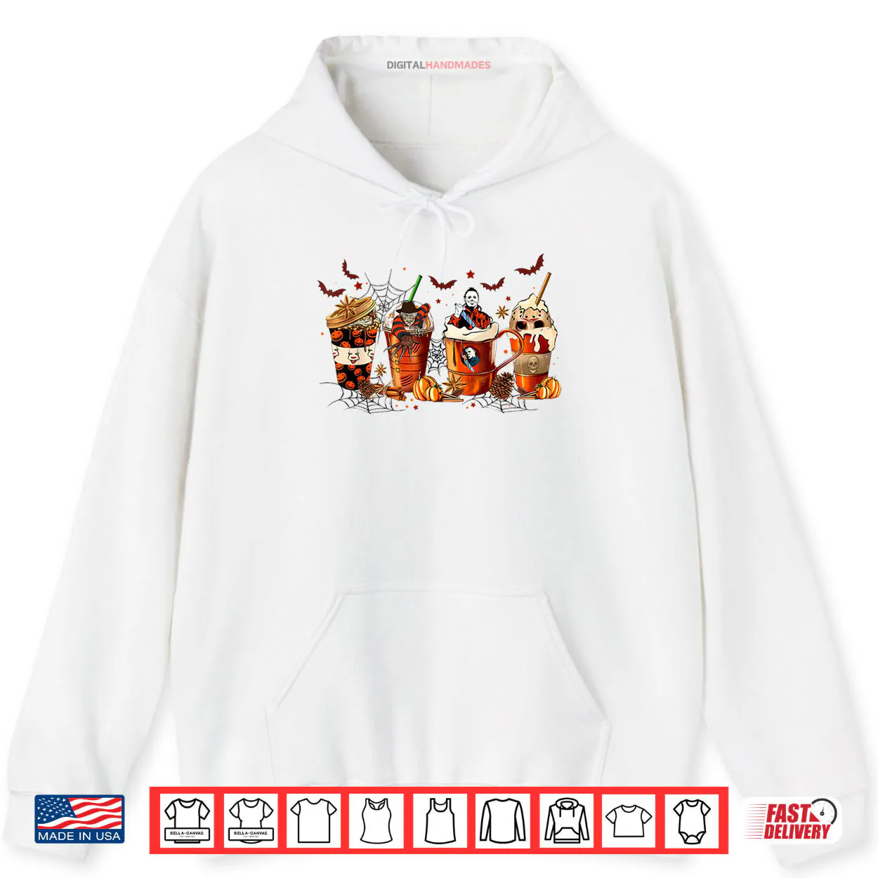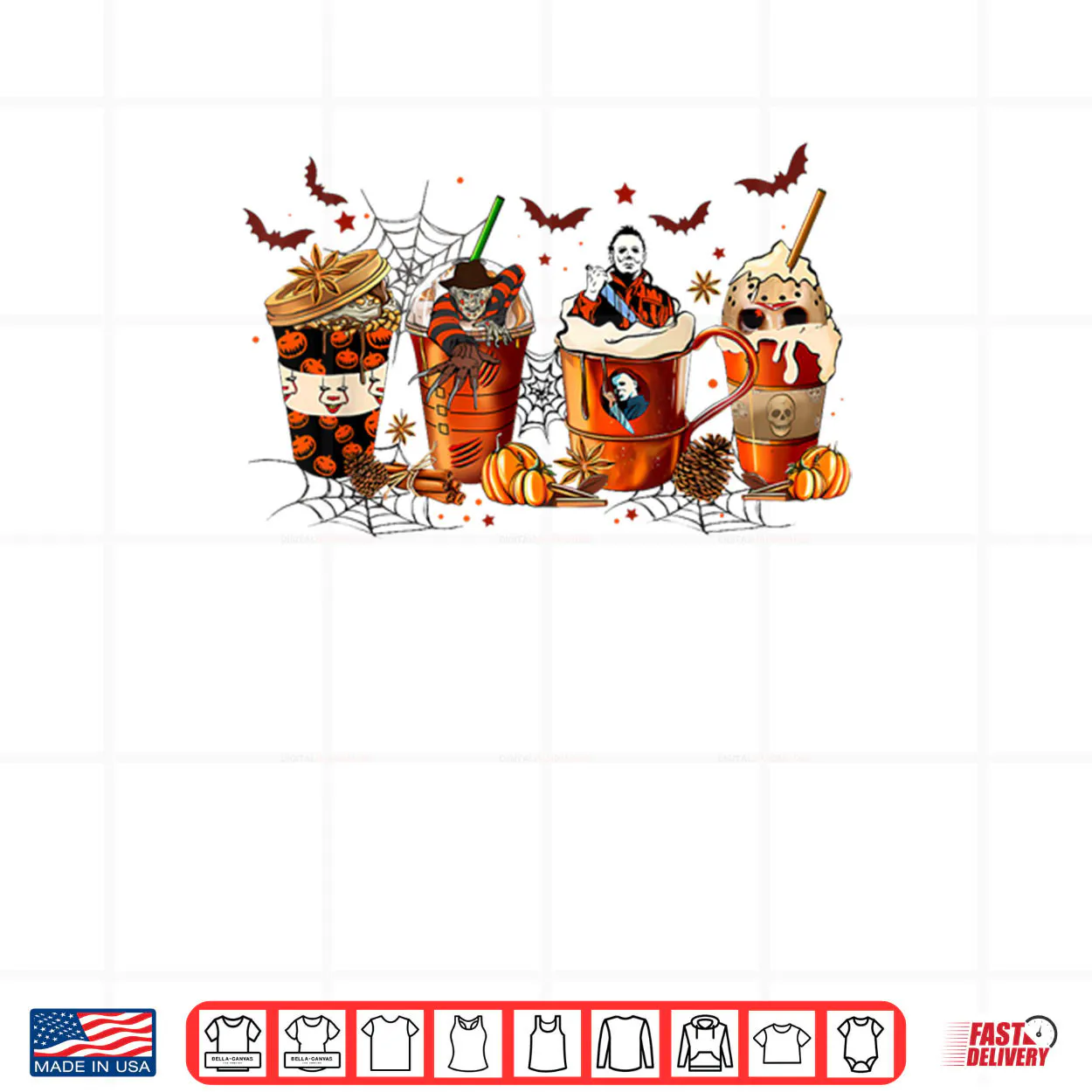 Vintage Halloween Horror Latte Coffee Cups Ghost Skeleton Shirt