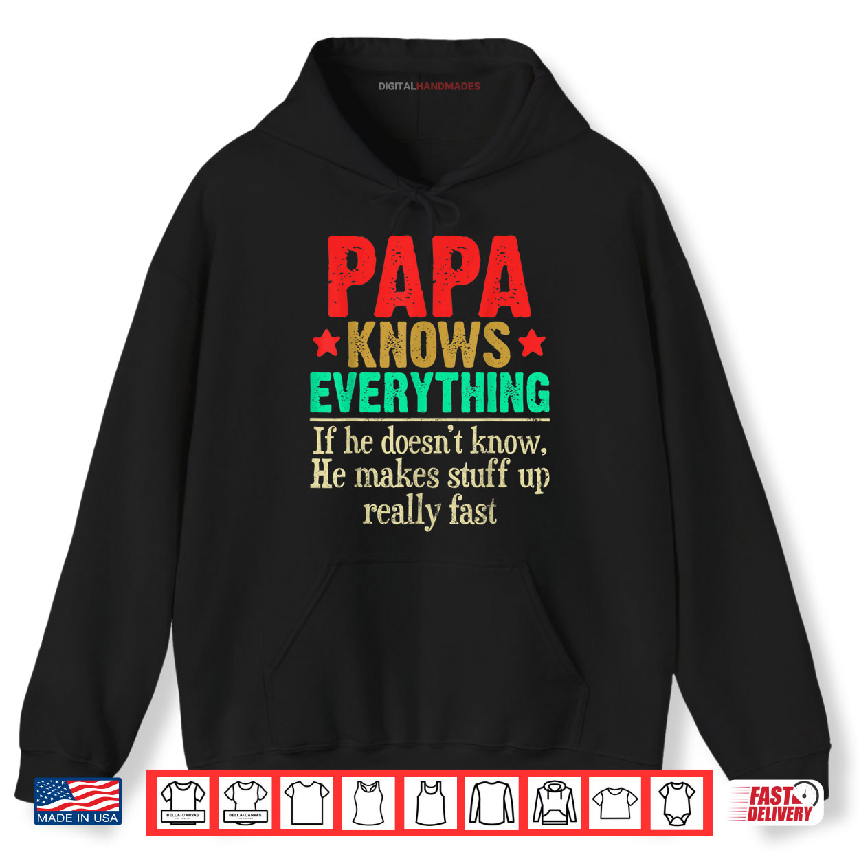 Vintage Retro Papa Knows Everything Father’s Day Family Shirt, Retro Papa Knows Everything Vintage Tee Shirt, Fathers Day Family Humor Gift Style Shirt, Funny Grandpa Wisdom Quote Proud Fan Shirt, If Papa Doesn’t Know No One Does Shirt, Best Grandfather Ever All Knowing Lady Chic Shirt, My Papa Is Smarter Than Your Phone Shirt, Family Patriarch Knows All Joke Sweet Cute Shirt, Hilarious And Wise Papa Apparel Love Heart Shirt, Classic Granddad Life Ride Hip Hop Rule Shirt