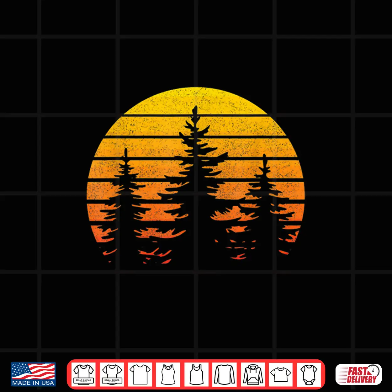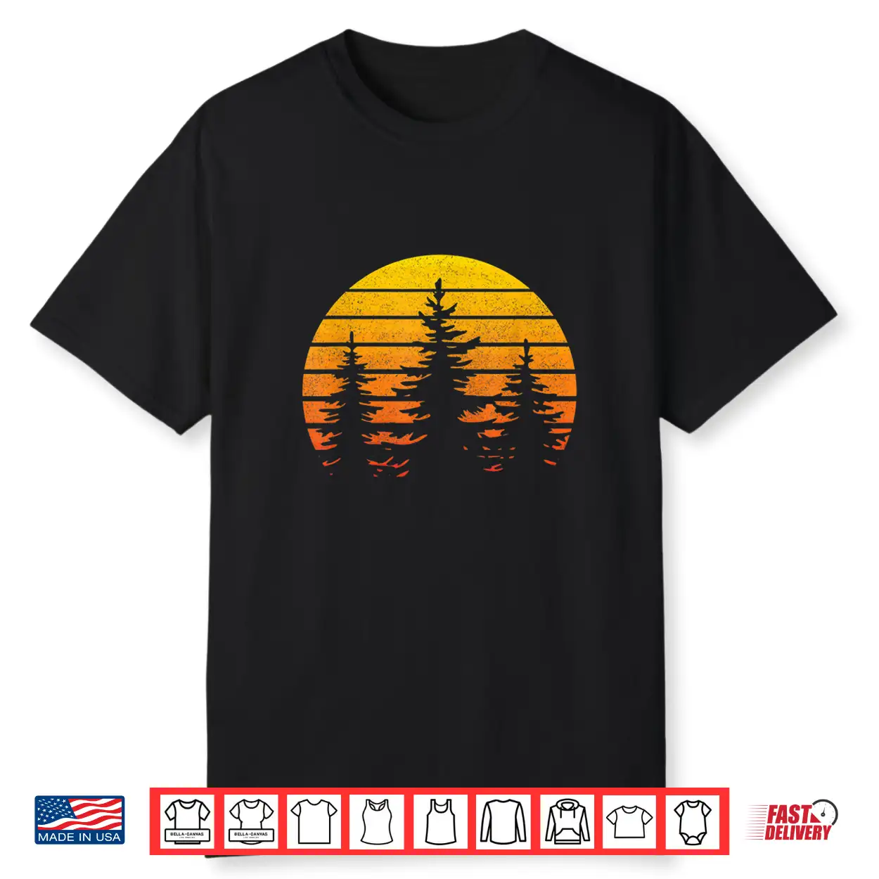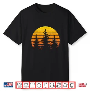 Vintage Retro Sun Sunset Pine Tree Hiking Camping Shirt
