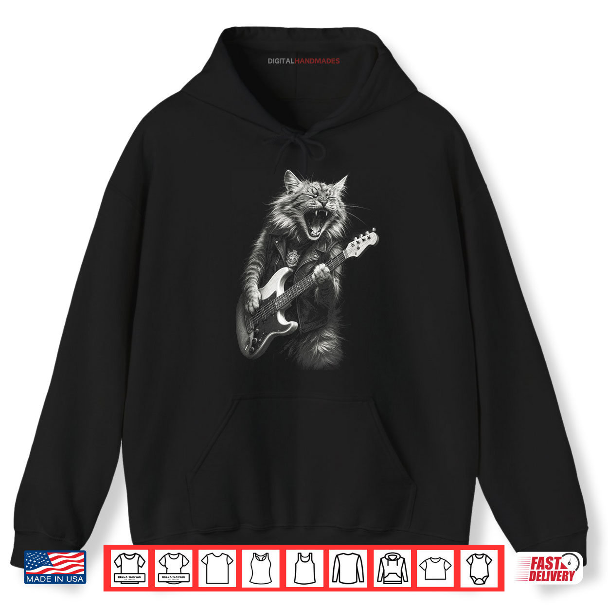 vintage, rock, cat, guitar, retro, music, band, funny, meme, trending