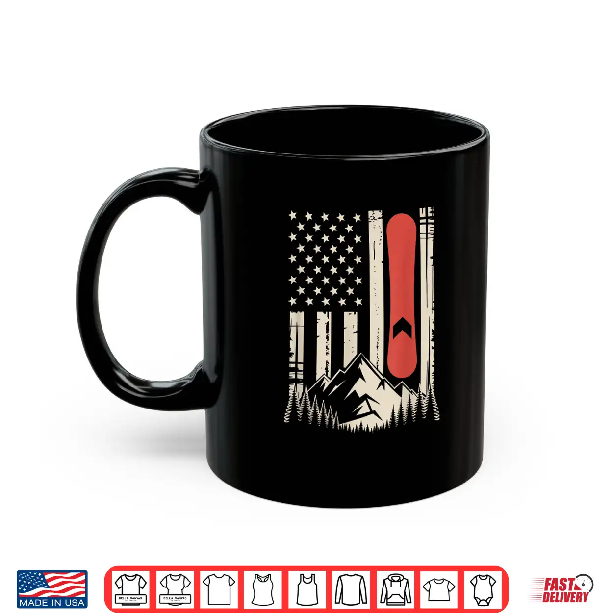 Athlete, Adventure, National, Winter Sports, Outdoor, USA Pride, Retro, American Flag, Snowboard Mountain, Patriot