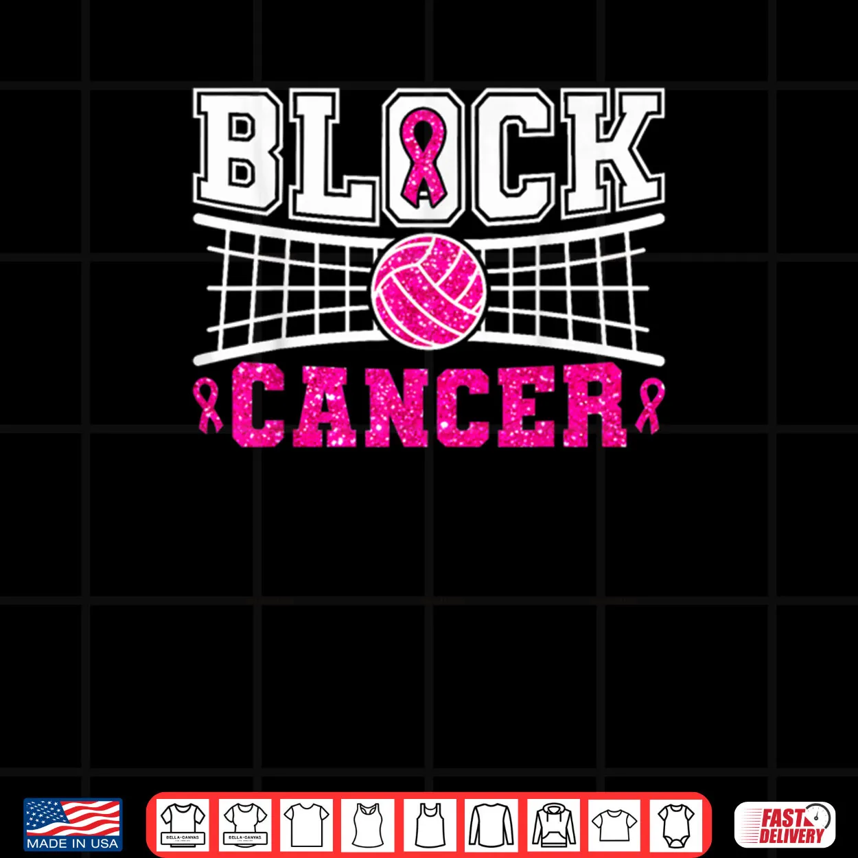 Volleyball Breast Cancer Awareness Block Out Cancer Pink Shirt