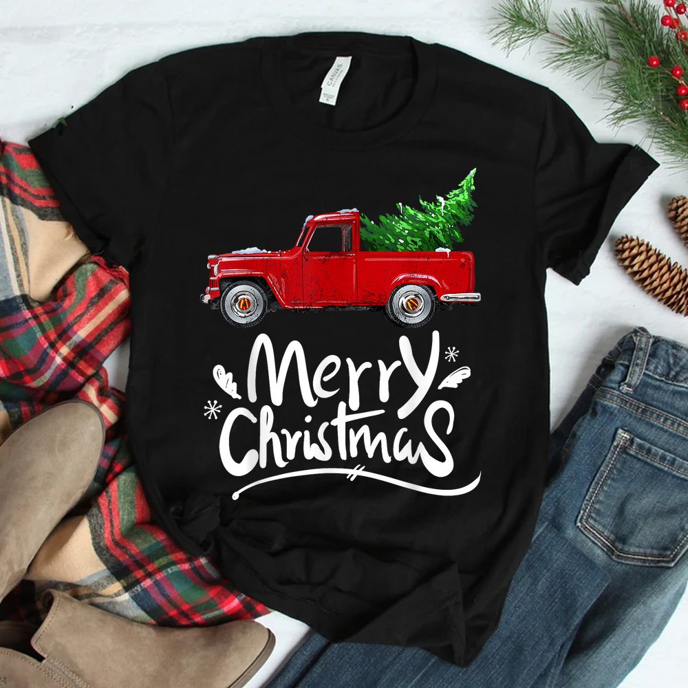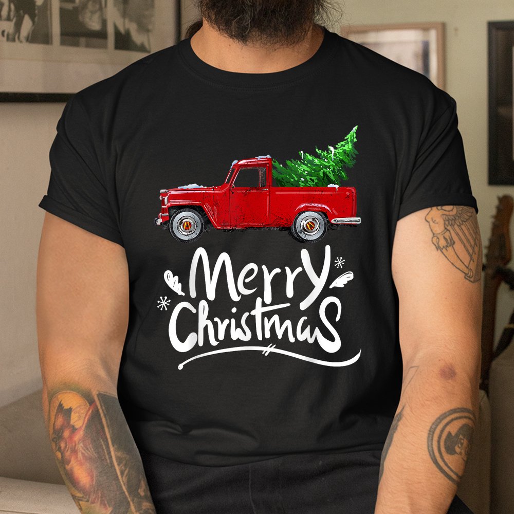 Wagon Red Truck Christmas Tree Pajama Shirt, hoodie, sweatshirt, long sleeve and ladies T-shirt