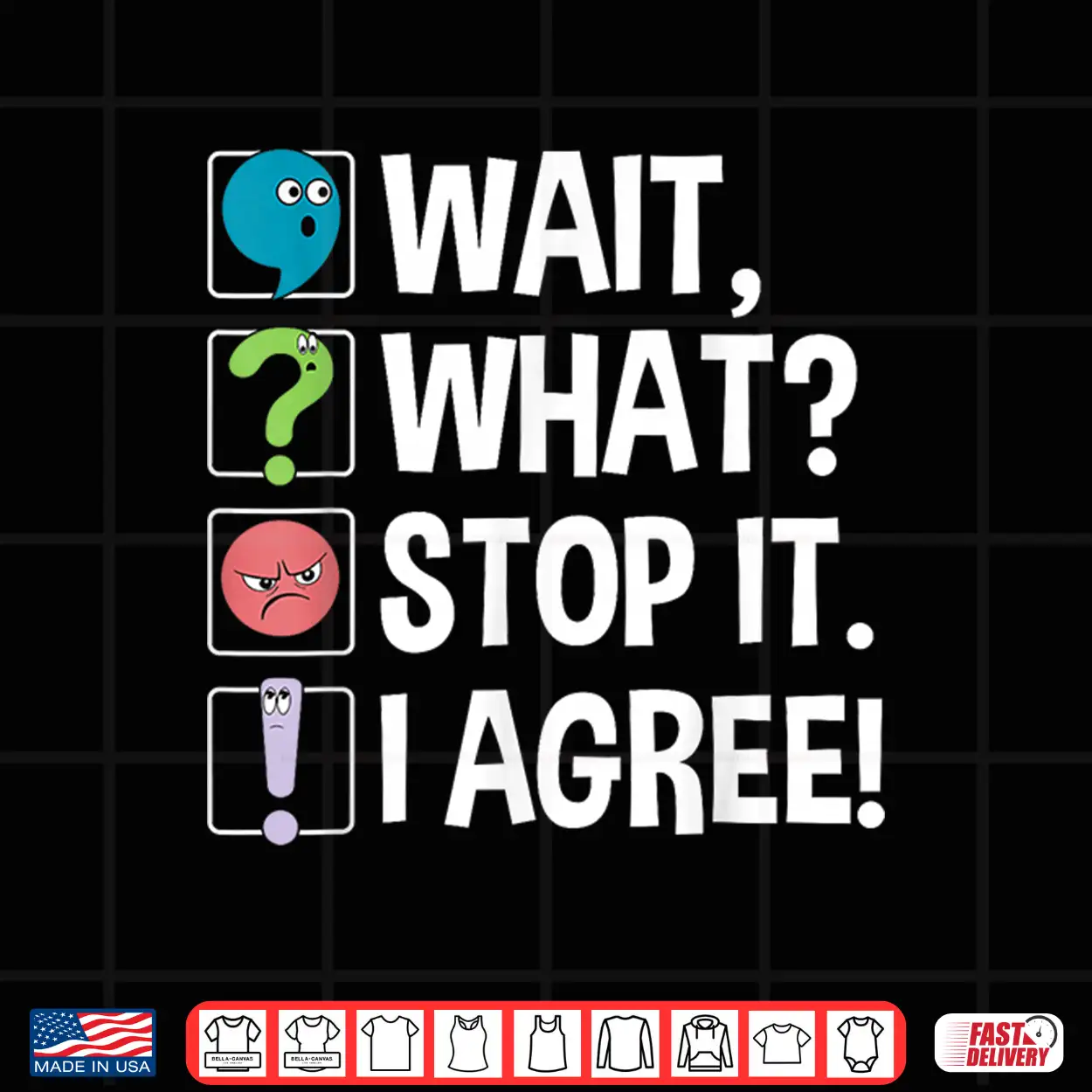 Wait What Stop It I Agree Funny English Teacher Punctuation Shirt