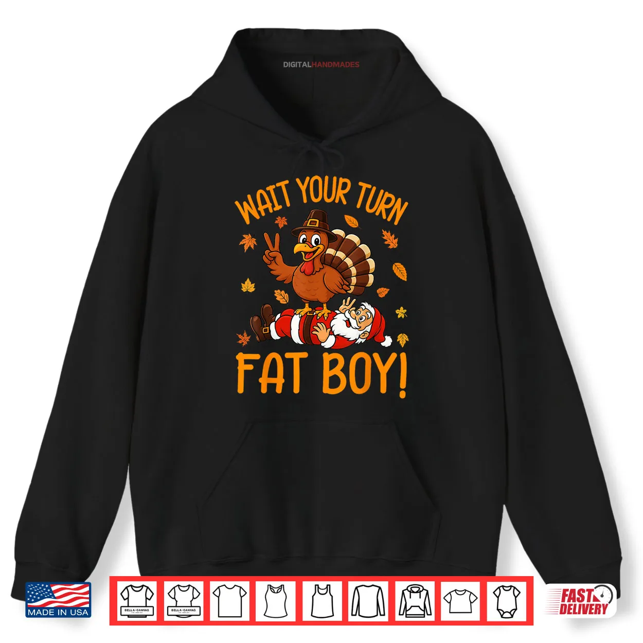 Wait Your Turn Funny Thanksgiving Turkey Santa Christmas Shirt