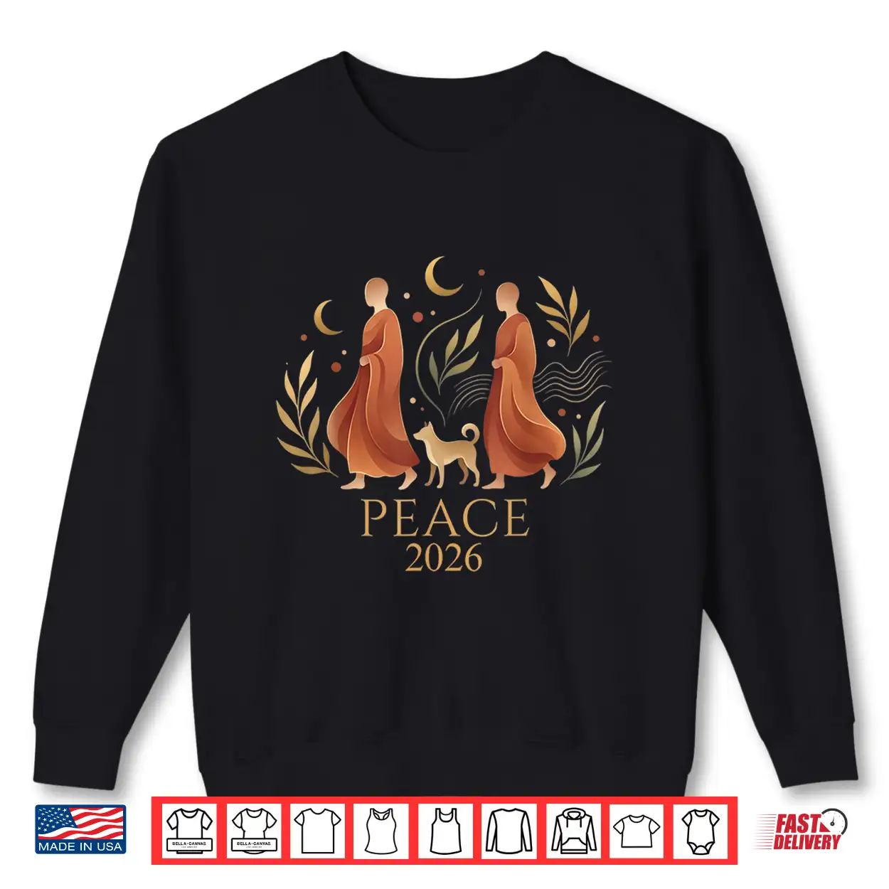 Walk Peace 2026 World Peace Monks With Aloka Dog Spiritual Shirt