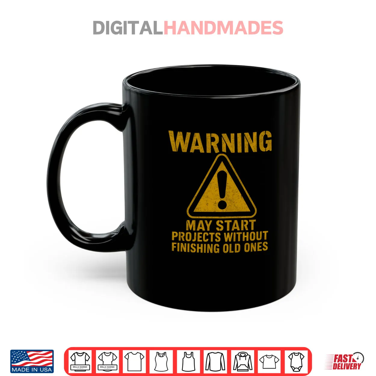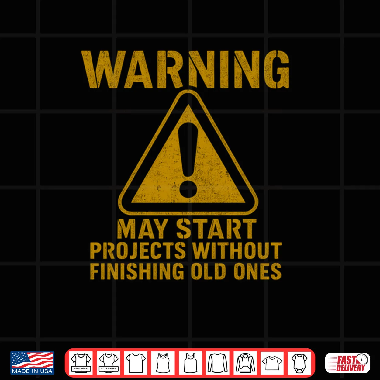 warning may start, projects without finishing, old funny, unfinished project, witty saying, procrastination, funny warning, adult humor, project joke, sarcastic