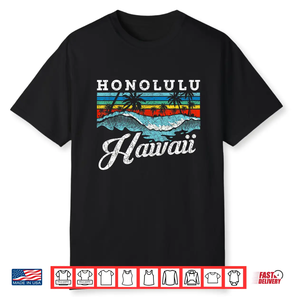 Waves Beach Honolulu Hawaiian Summer Surfing Retro Hawaii Shirt