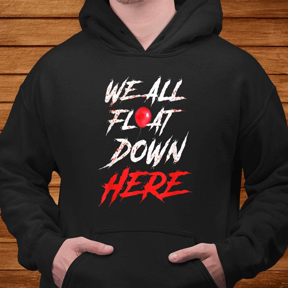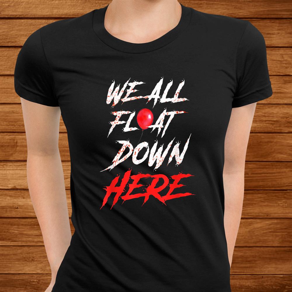 We All Float Down Here Bloody Red Balloon Horror Halloween Shirt, hoodie, sweatshirt, long sleeve and ladies T-shirt
