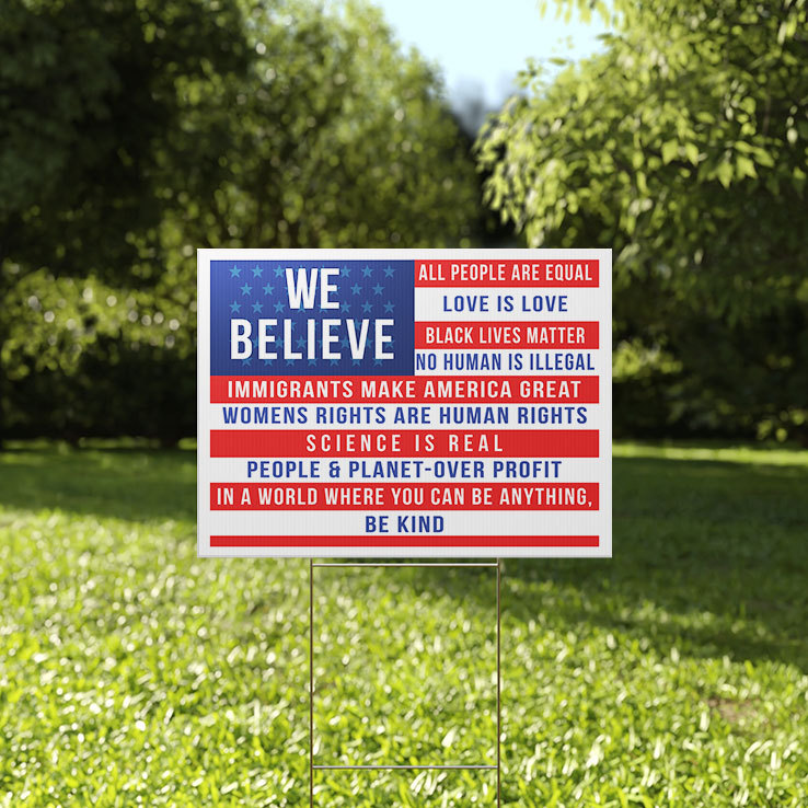 We Believe All People Are Equal Love is Love Black Lives Matter Yard Sign