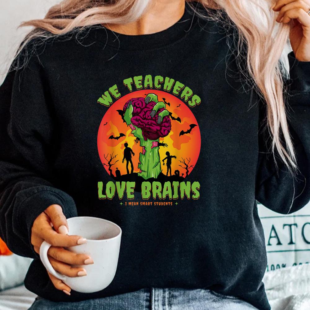 We Teachers Love Brain Smart Student Zombie Halloween Shirt, hoodie, sweatshirt, long sleeve and ladies T-shirt