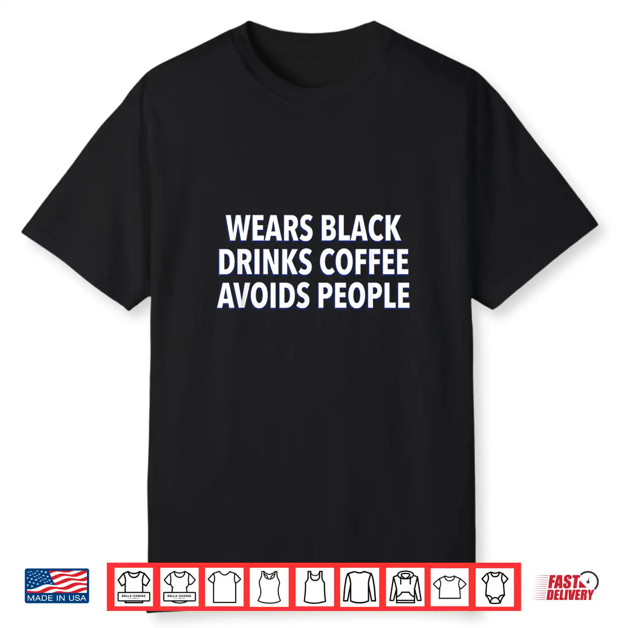 Wears Black Drinks Coffee Avoids People Funny Quote Shirt