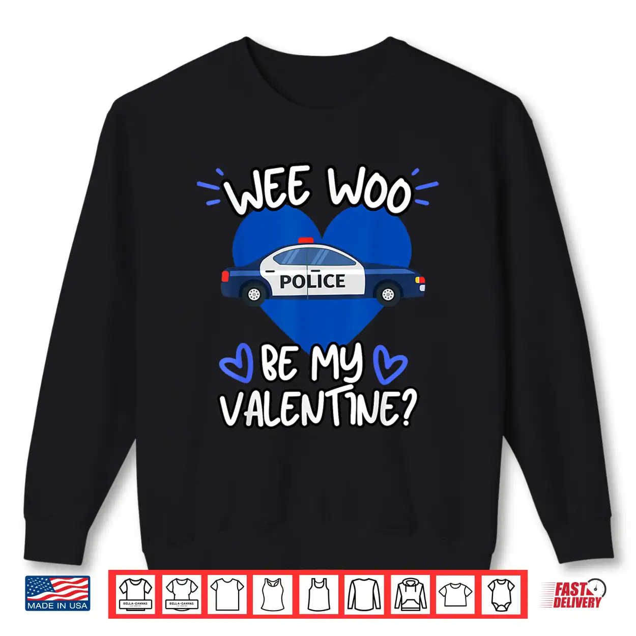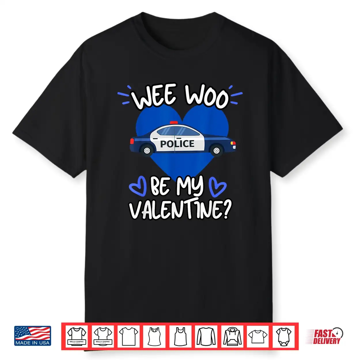 Wee Woo Be My Valentine Police Car Officer Law Enforcement Shirt