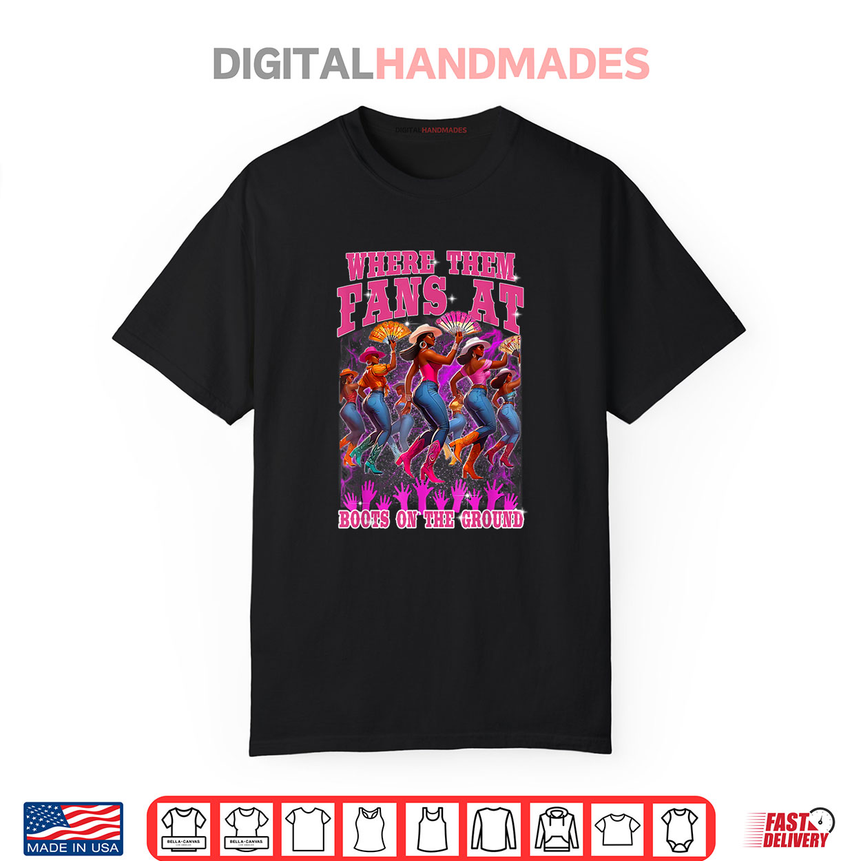 where them fans at boots on the ground cowgirls shirt, western cowgirl pride shirt, rodeo lover funny tee, cowgirls boots on ground shirt, country music festival outfit, western rodeo humor shirt, fan rallying cry shirt, country girl pride shirt, boots and hats fan tee, southern lifestyle shirt