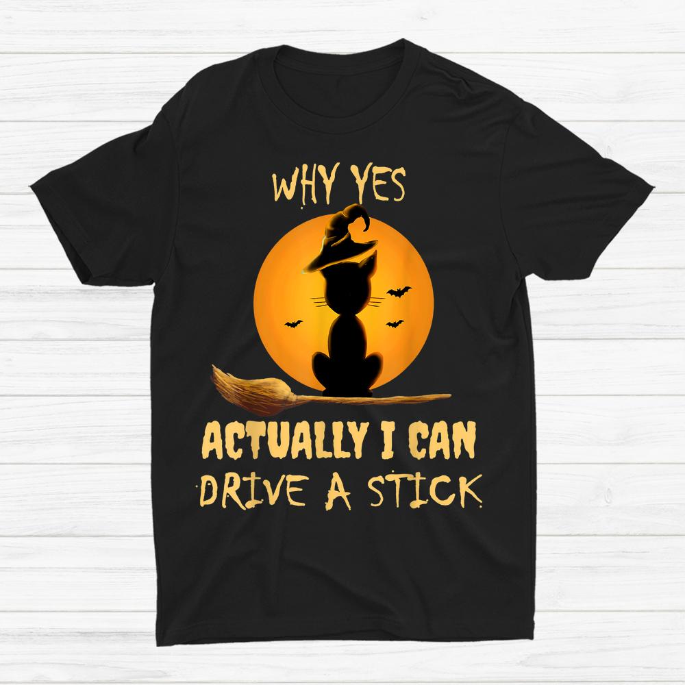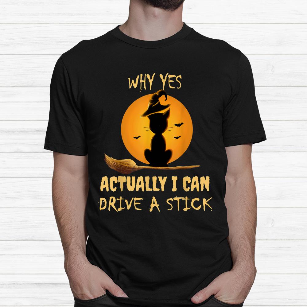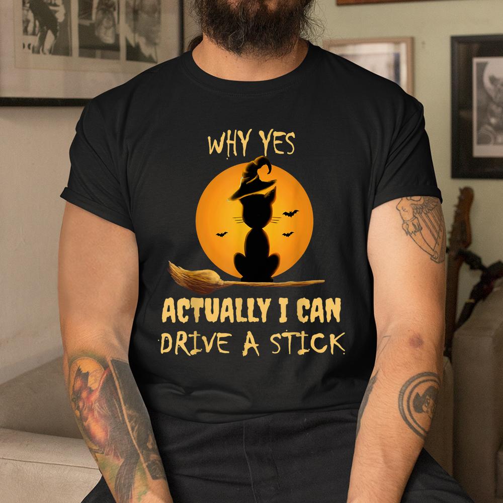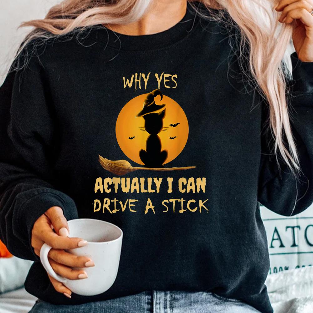 Why Yes Actually I Can Drive A Stick Witch Cat Halloween Shirt, hoodie, sweatshirt, long sleeve and ladies T-shirt