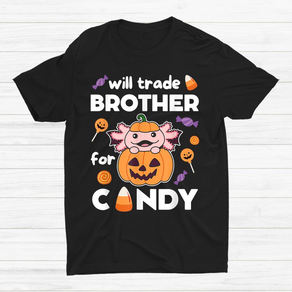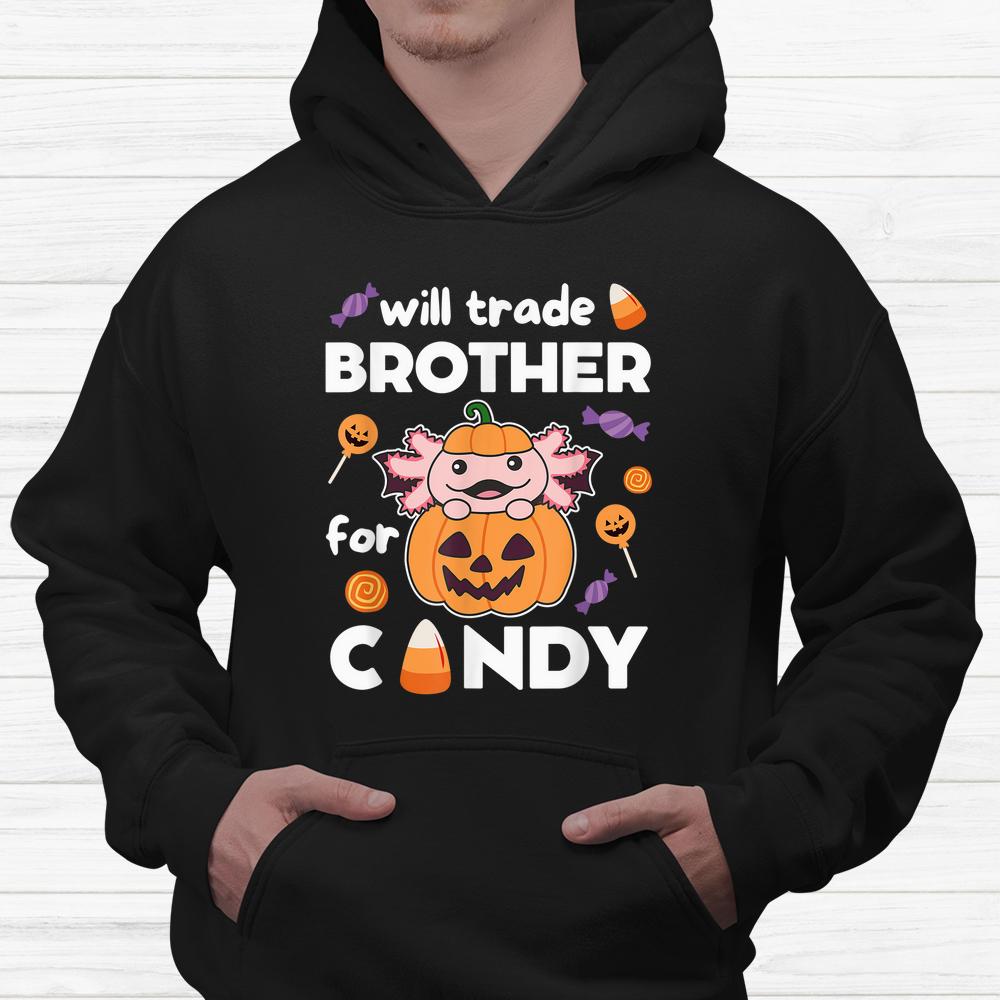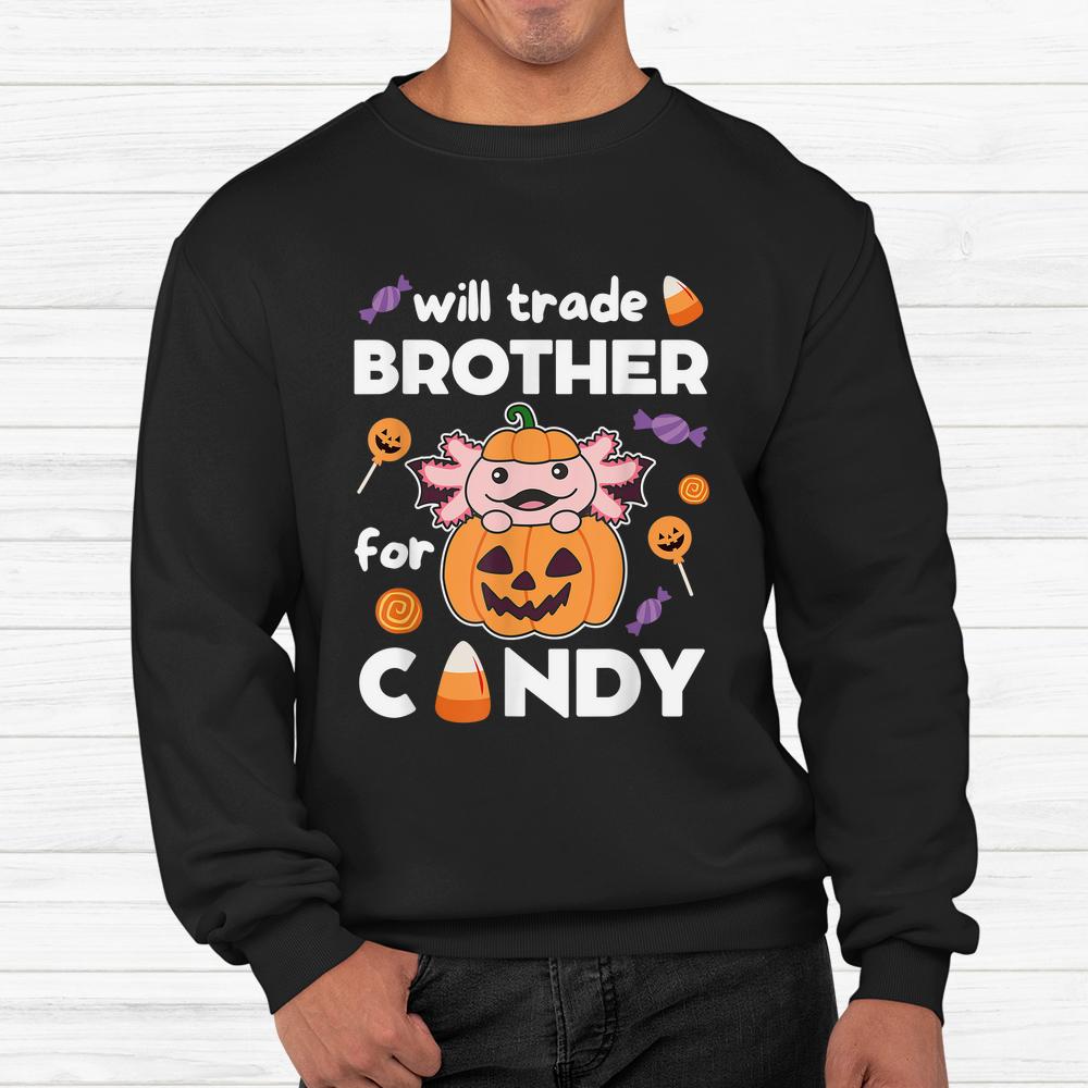 Will Trade Brother For Candy Axolotl Halloween Pumpkin Shirt, hoodie, sweatshirt, long sleeve and ladies T-shirt