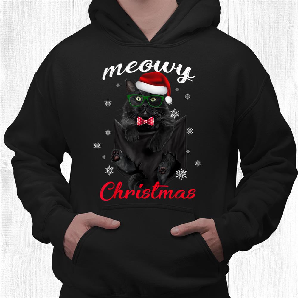 Winter Holiday Furry Genius Black Cat Christmas Santa Hat Shirt, hoodie, sweatshirt, long sleeve and ladies T-shirt