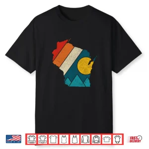 Wisconsin Vintage State Map Mountains Hiking Pride Gift Shirt