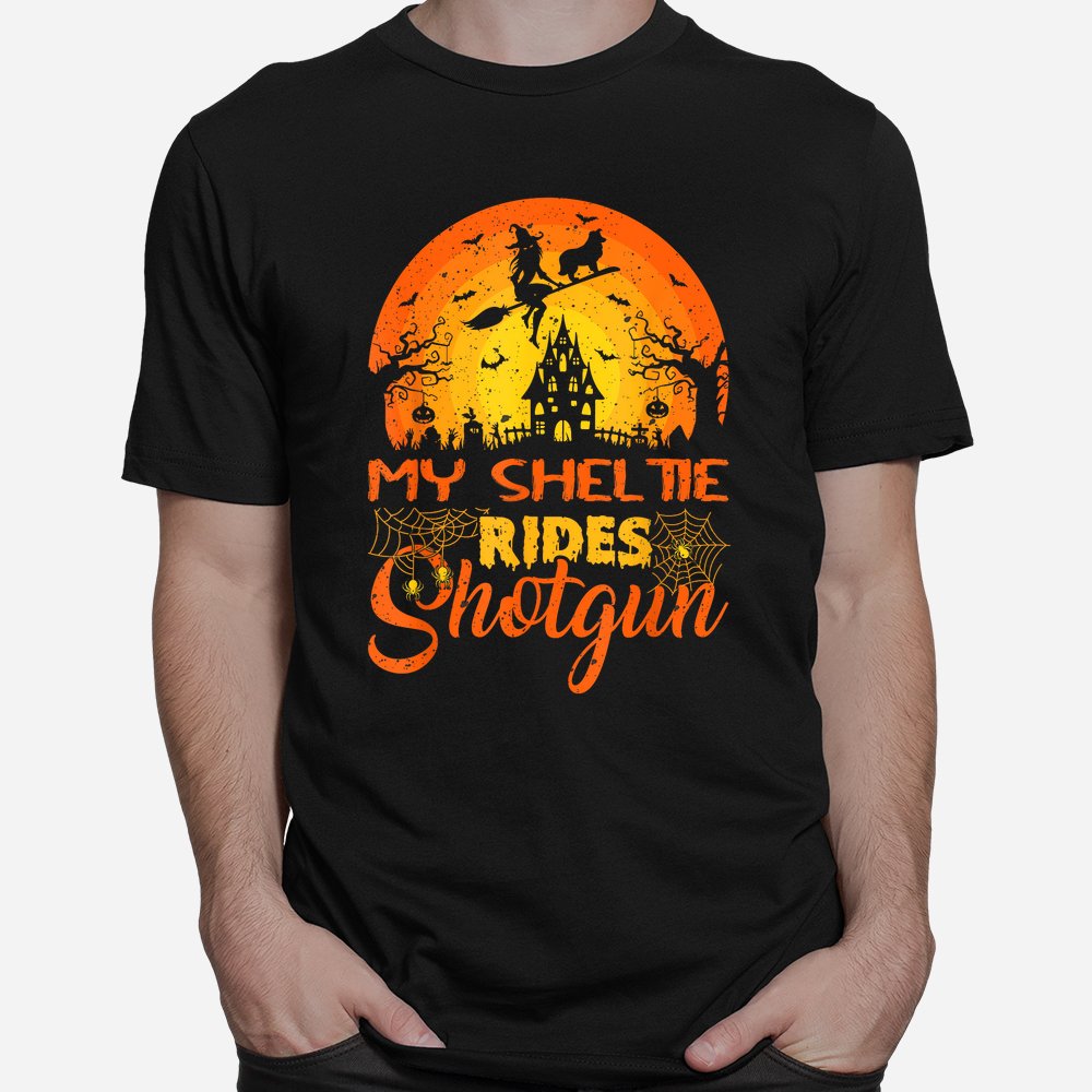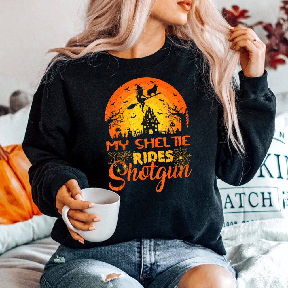 Witch My Sheltie Rides Shotgun Halloween Shirt, hoodie, sweatshirt, long sleeve and ladies T-shirt