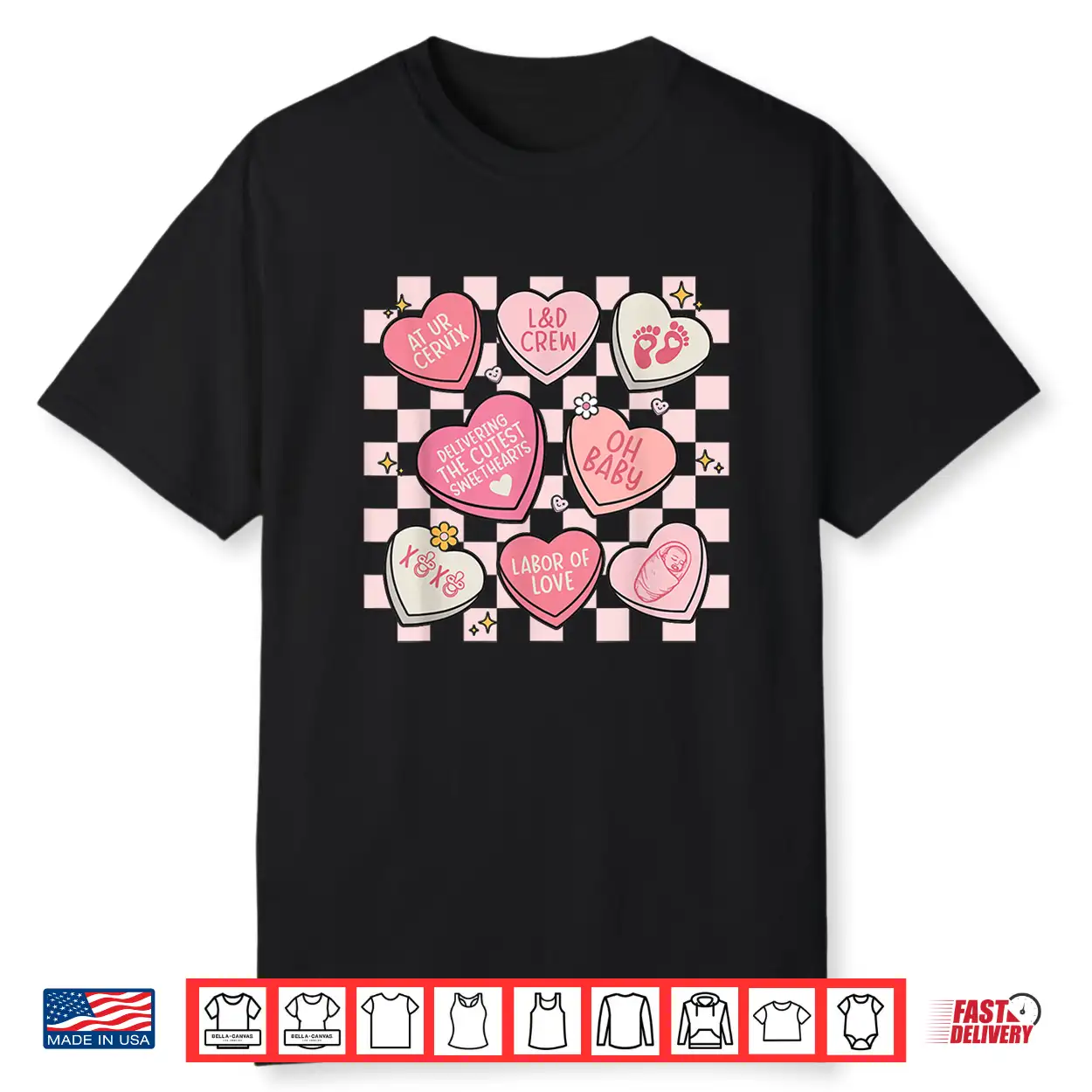 Women Labor And Delivery Nurse Hearts Candy Valentine’S Day Shirt