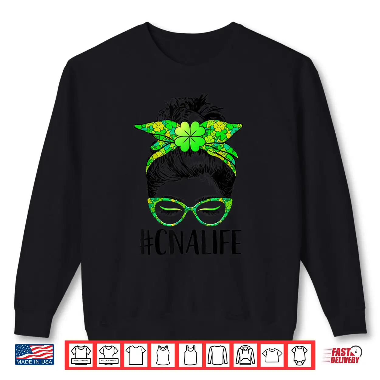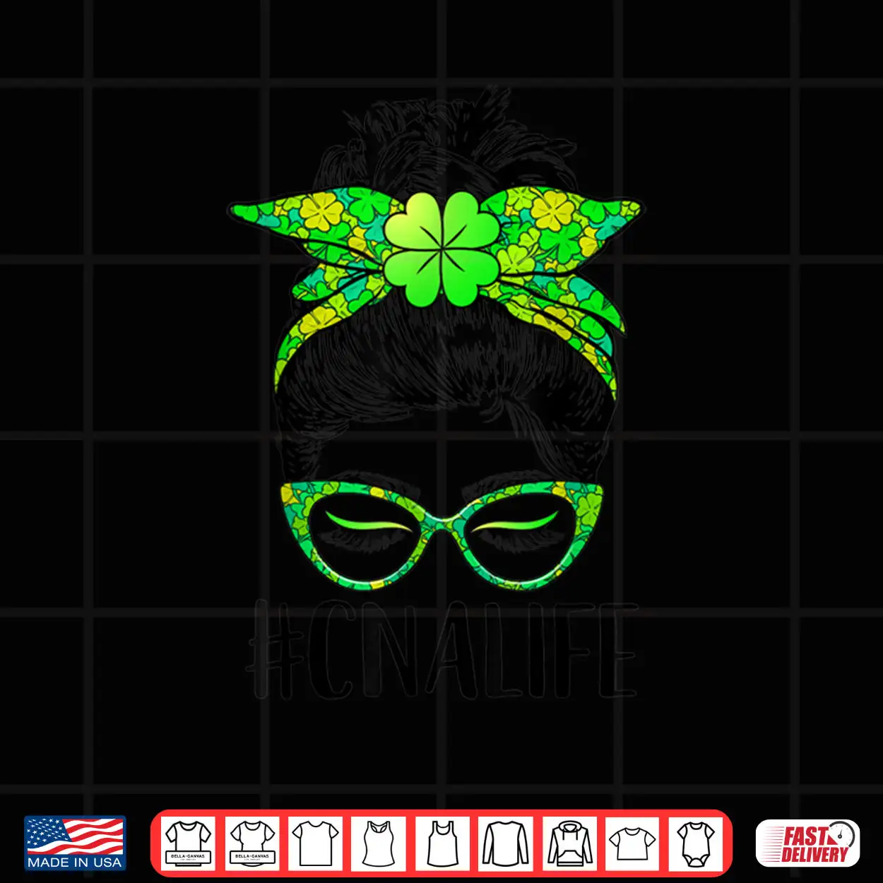 Womens CNA Life Messy Bun Nurse Shamrock St Patricks Day Shirt