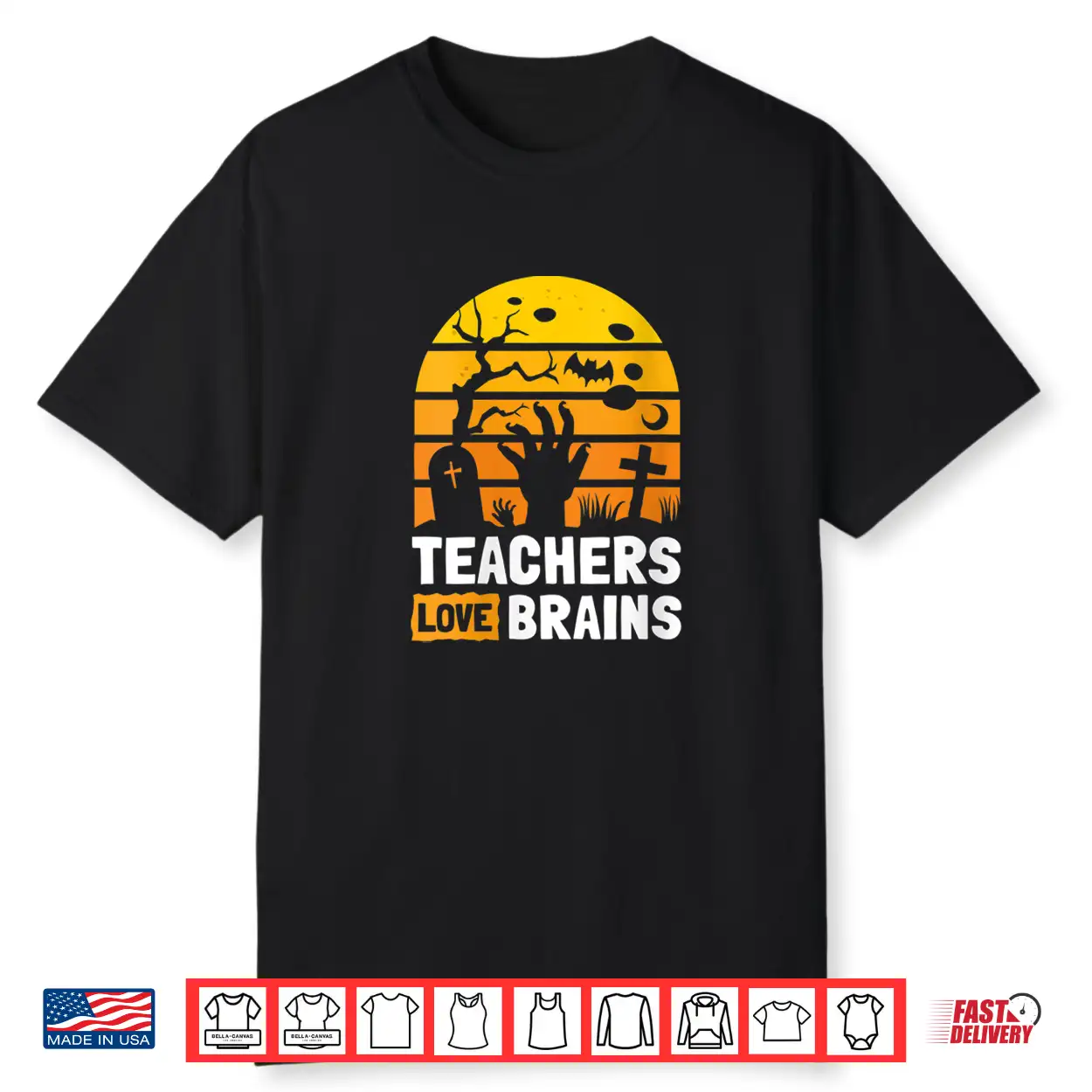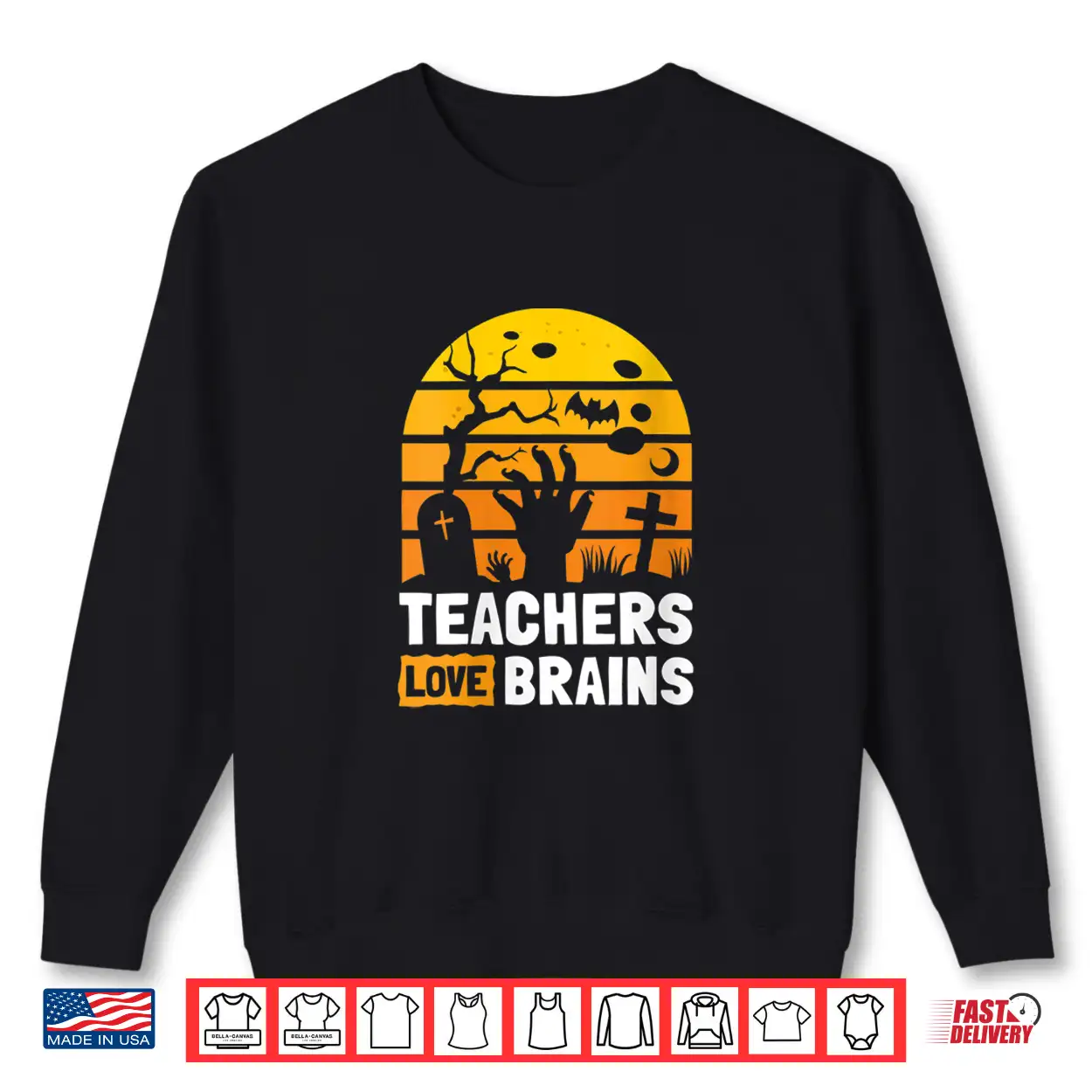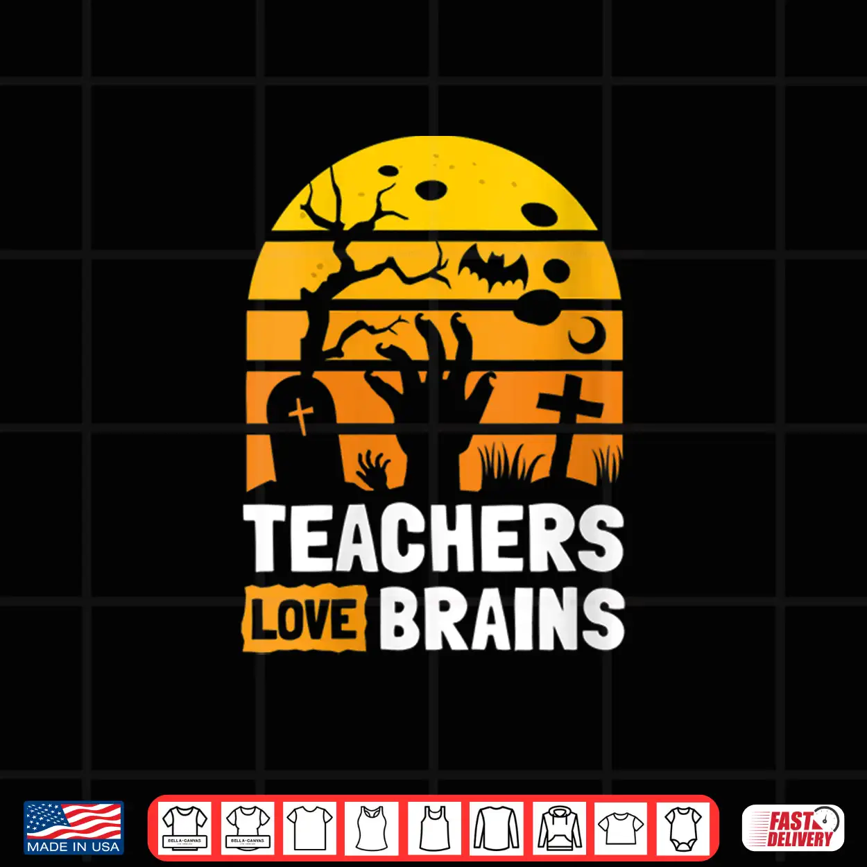 Womens Halloween Science Math English History Teachers Love Brains V Neck Shirt
